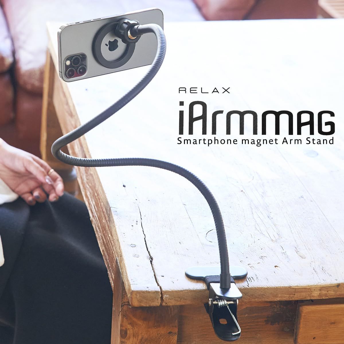 RELAX iArm Mag アイアーム マグ MagSafe対応 スマホスタンド クリップ式 フレキシブルアーム スマホ ホルダー 自由調整 メタルプレート付き (ブラック)