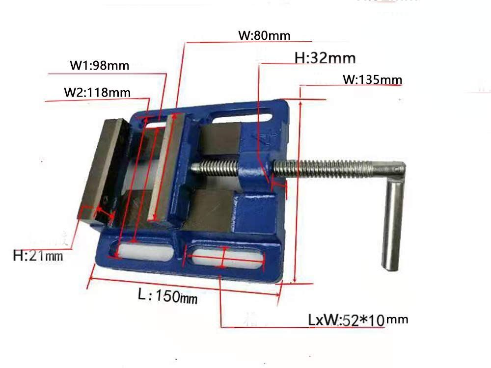 【寸法】ボール盤バイス口幅:76mm、 最大開口:78mm、口の深さ:23mm、重さ:約2.8kg。