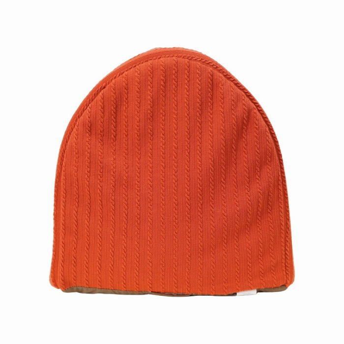 外生地は暖かな印象を与えてくれるケーブルニット生地を使用。