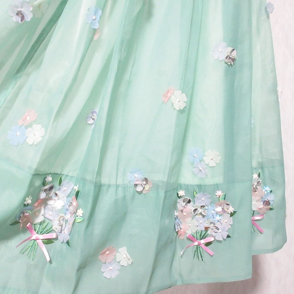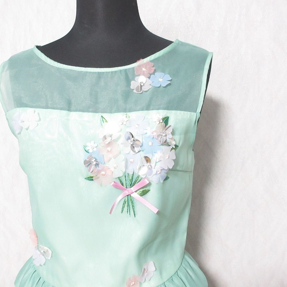 【商品名】Chesty チェスティ フラワーブーケ装飾 シアーノースリーブワンピース 11S520 サイズ0 グリーン