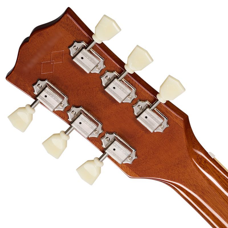 ボディにはジェニュイン・マホガニーを使用し、トップにはプレーン・メイプルを採用。フィニッシュには、伝統的なゴールドカラーをわずかにヴィンテージライクに仕上げたヴィンテージ・グロスを採用し深みのある風合いを演出しています。