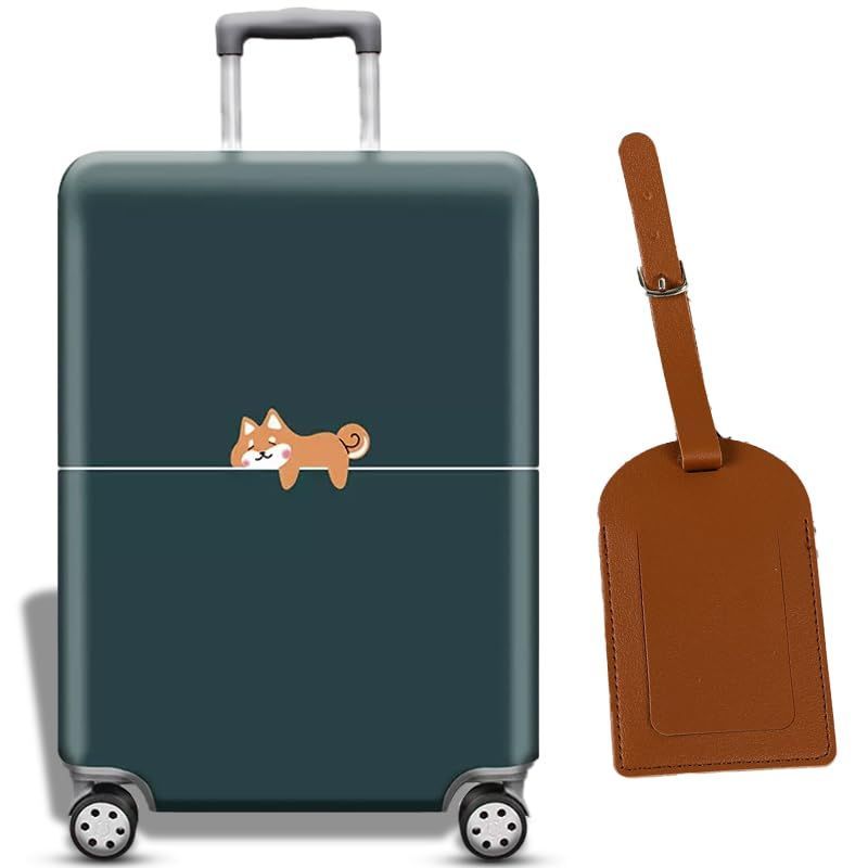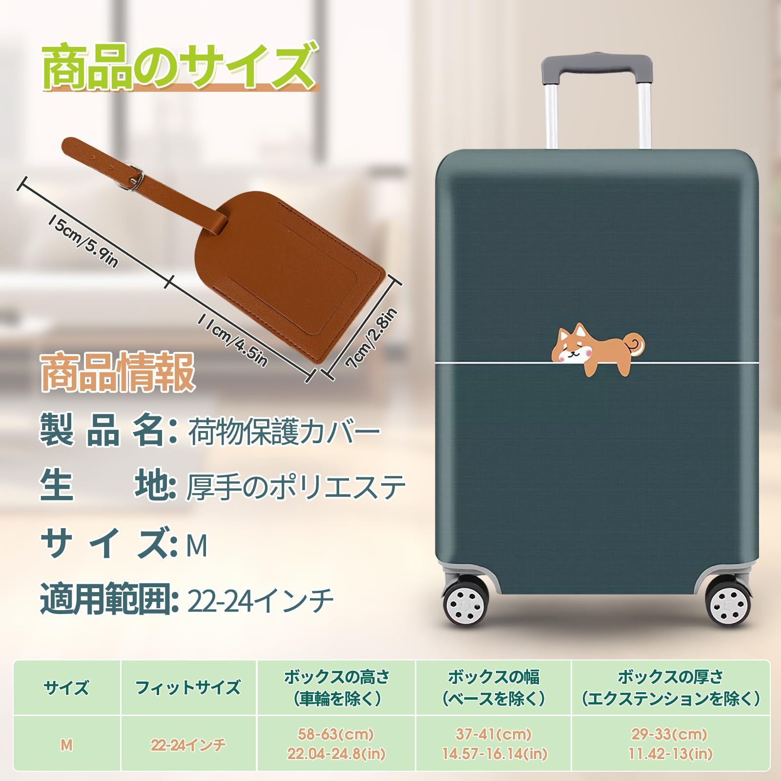 [Charming Club] スーツケース カバー キャリーケースカバー ラゲッジカバー 伸縮性あり 可愛い おしゃれ 目立つ 紛失防止 傷防止 荷物保護カバー 旅行 出張 ゴールデンウィーク用スーツケースカバー 荷物タグ付き (犬柄 22-24インチ)