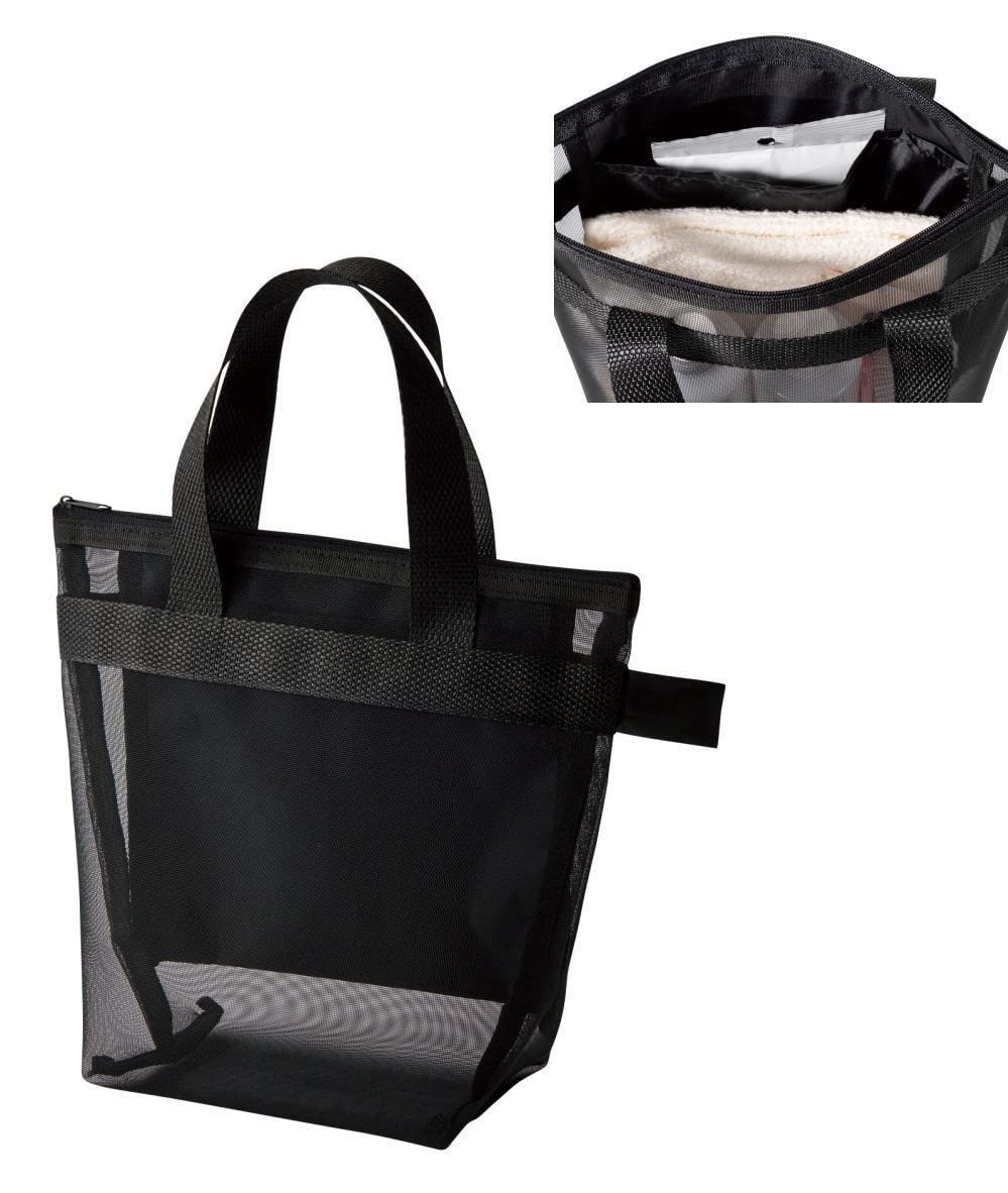 サウナ、スパやジム、ヨガなどで快適に使える全面メッシュ素材。通気性と収納力も抜群です。ミニサイズ。
