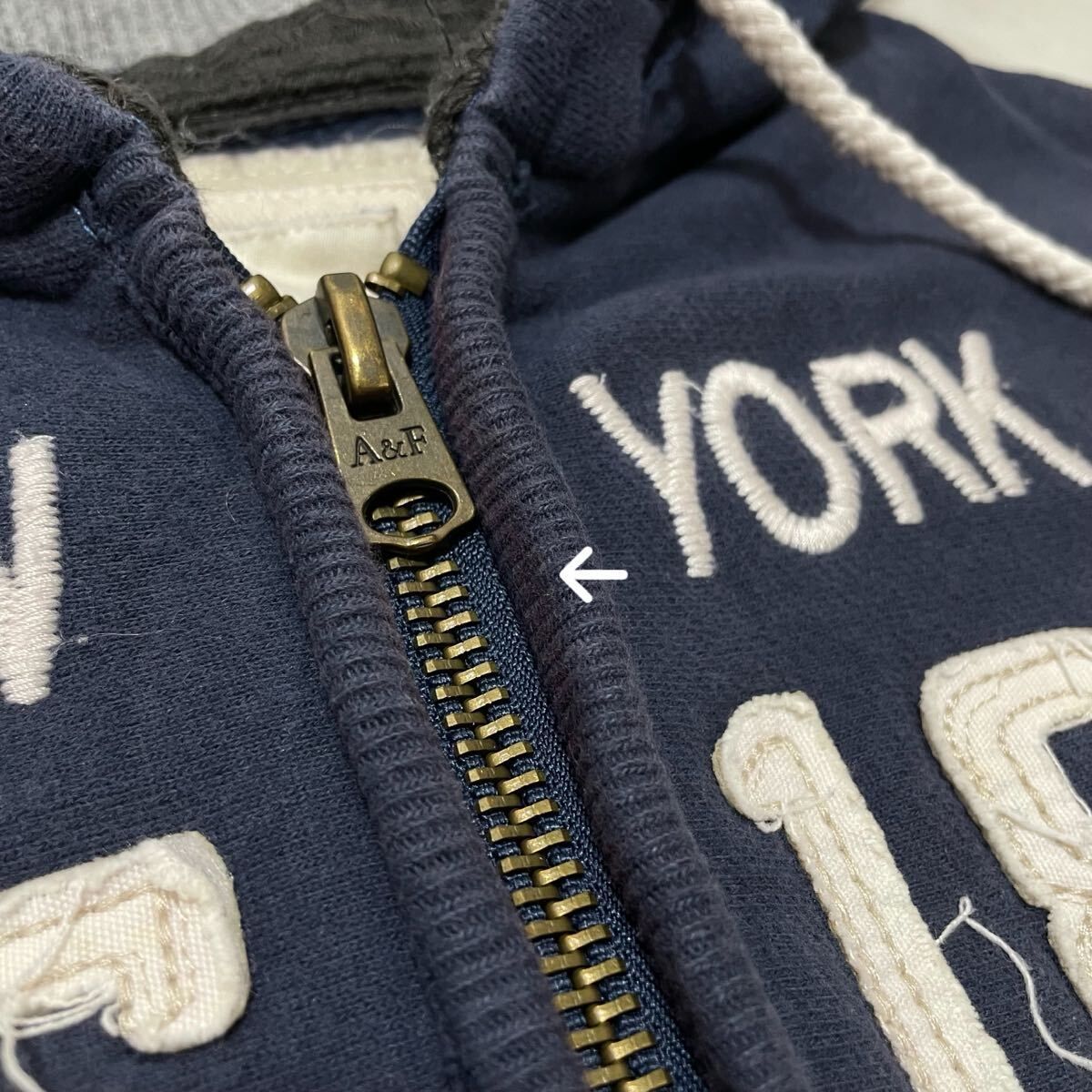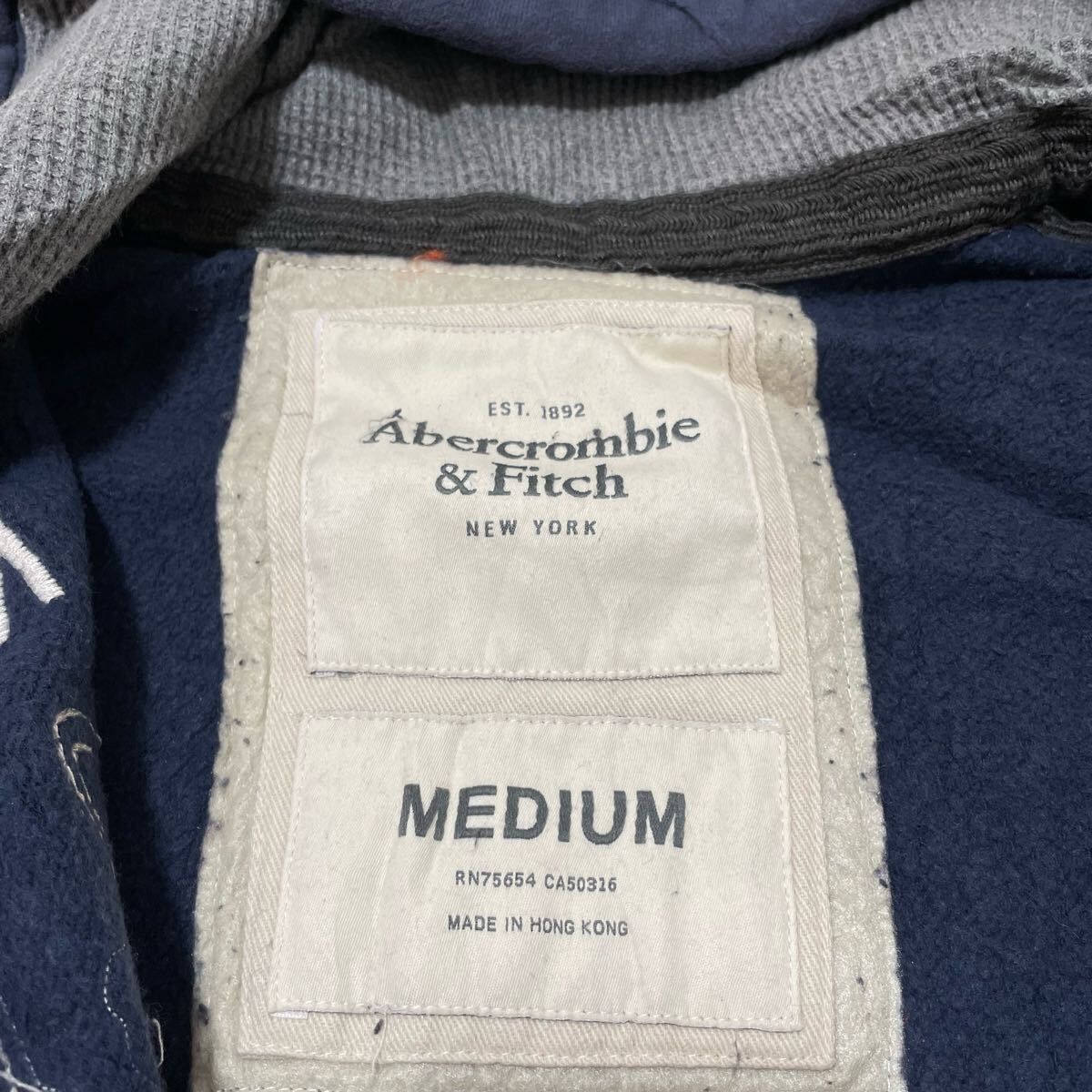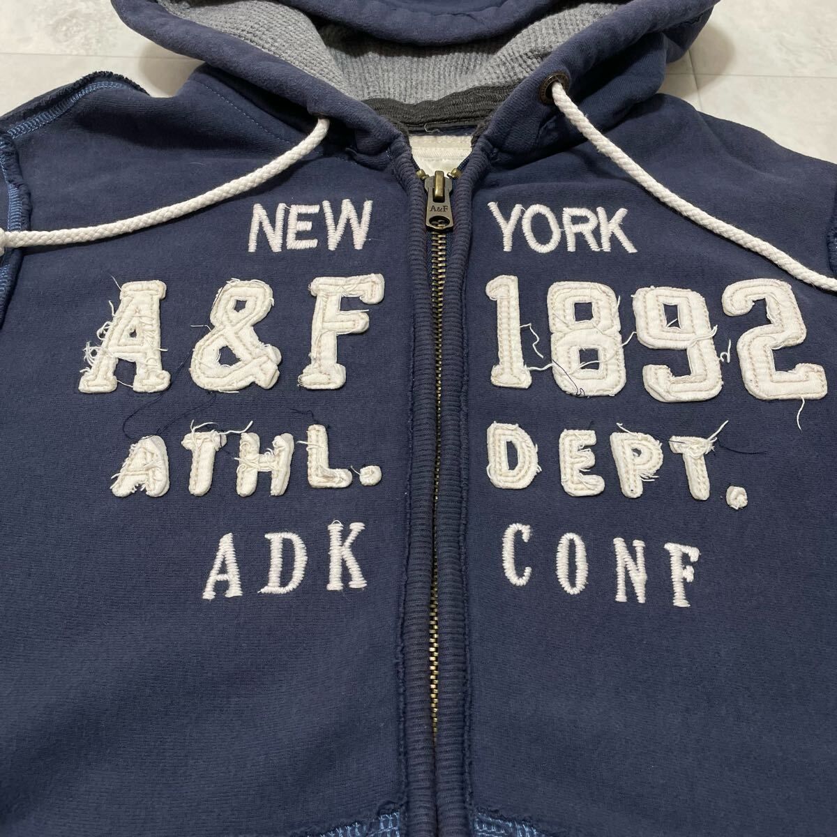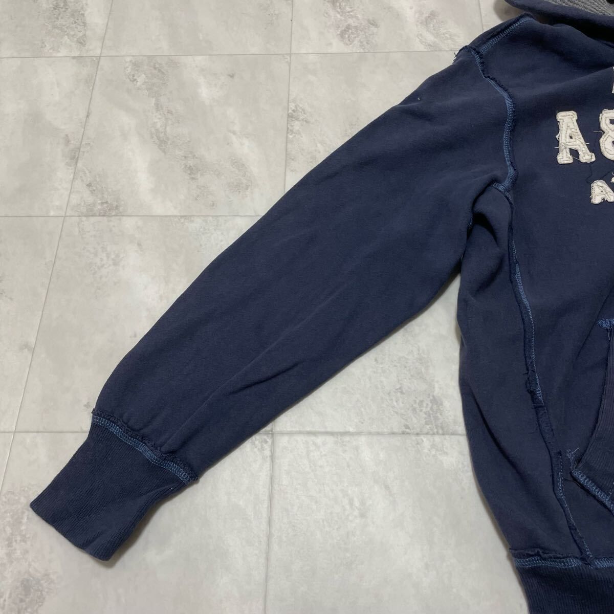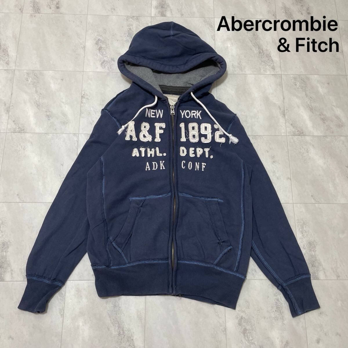 Abercrombie&Fitch アバクロ ジップパーカー sweat hoodie スウェットパーカー 刺繍ロゴ ネイビー サイズM 玉FL3963