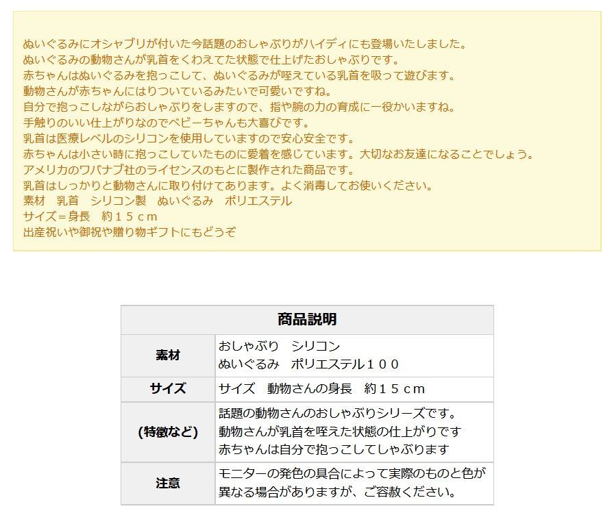 ぬいぐるみにオシャブリが付いた今話題のおしゃぶりがハイディにも登場いたしました。