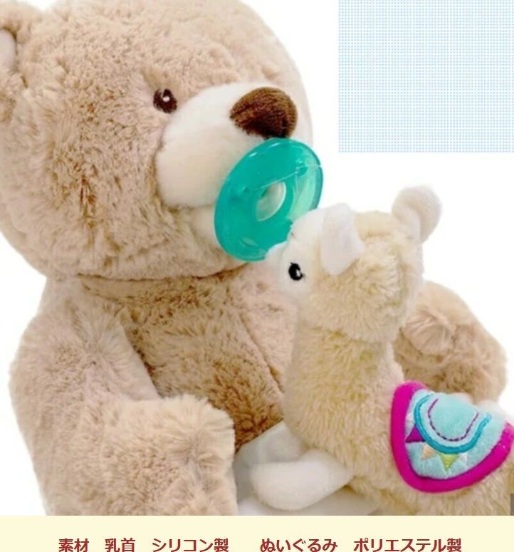赤ちゃんはぬいぐるみを抱っこして、ぬいぐるみが咥えている乳首を吸って遊びます。