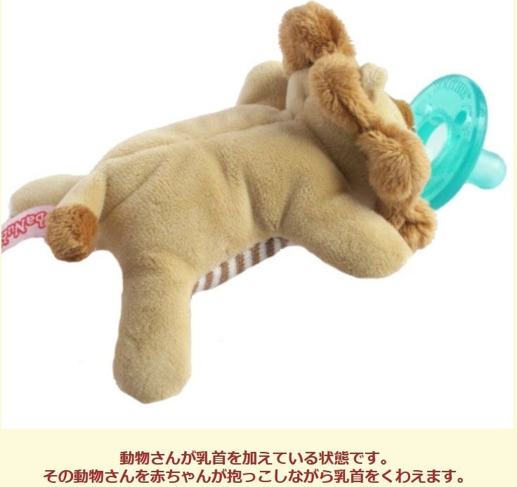 ぬいぐるみの動物さんが乳首をくわえてた状態で仕上げたおしゃぶりです。