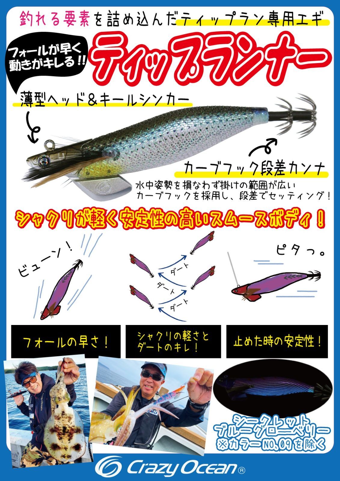 ティップラン専用エギ、ティップランナーは、フォールの速さ、シャクリの軽さ、ダートの切れの良さ、流水時の安定性、停止時の姿勢、針掛かりの良さ、等その他諸々 ティップランに必要とされる要素全てを独自に検証し、最善と呼べる性能を追求。