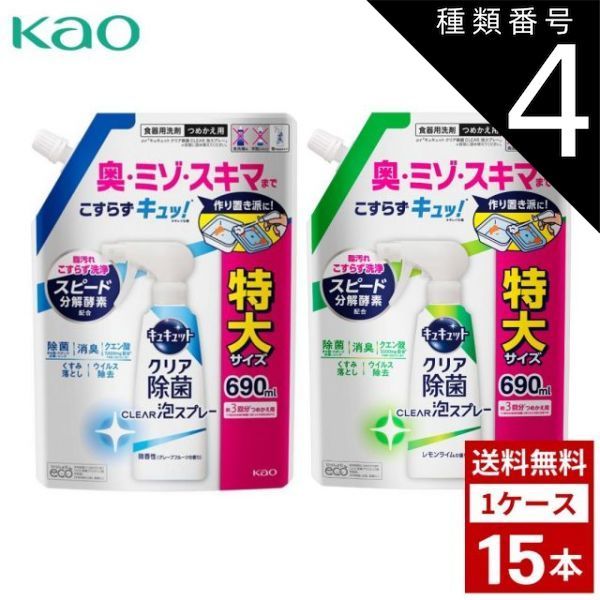 花王キュキュットクリア除菌CLEAR泡スプレー食器用洗剤各種つめかえ用超特大690ml詰め替え洗剤洗濯まとめ買い箱買い詰め合せ送料無料