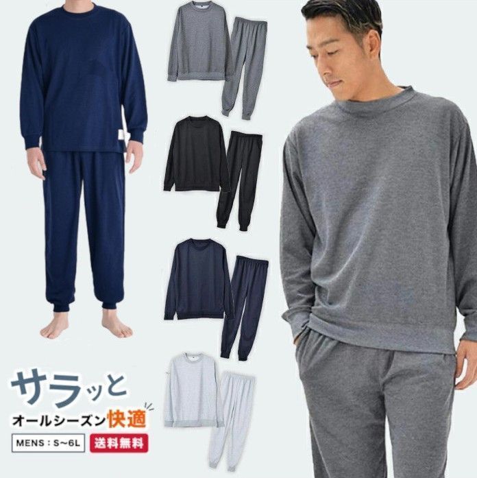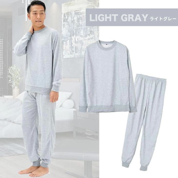 【ライトグレー/Lサイズ】メンズ ルームウェア セットアップ スウェット 長袖 長ズボン 上下セット 部屋着 パジャマ 薄手 Lサイズ 快適 速乾 オールシーズン対応