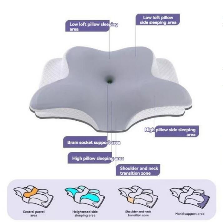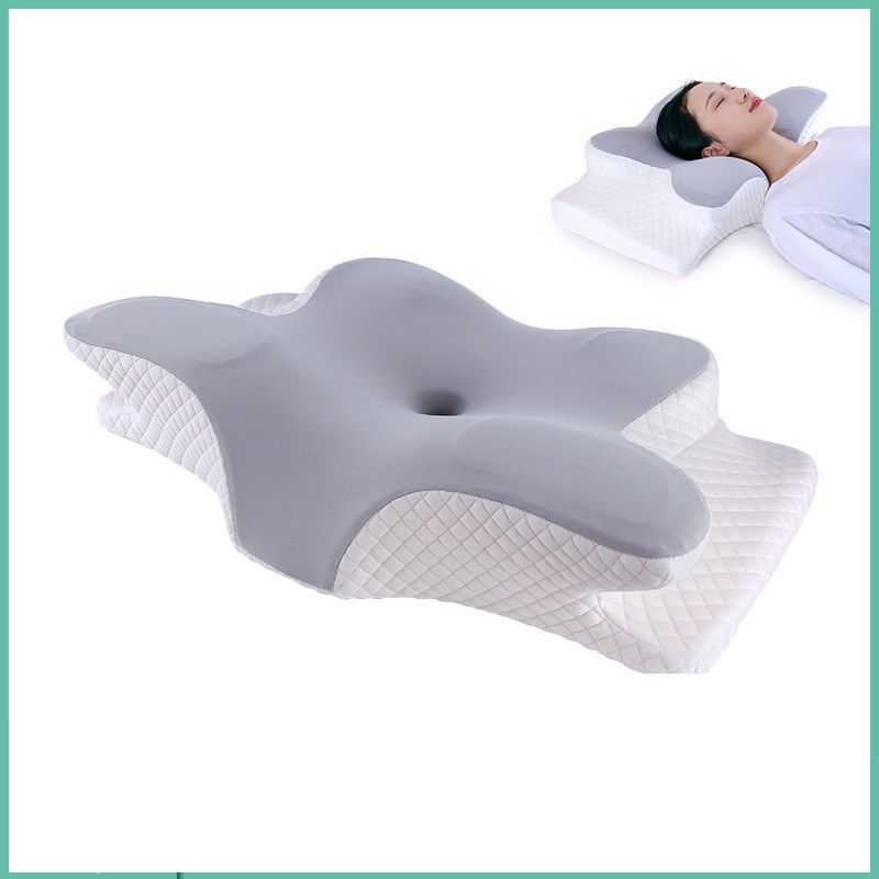 蝶型のデザインで、肩と肩口のカーブにフィットするアーチ型形状で首の自然なカーブをサポートし痛みや気道の圧迫をケア。凹型の中空設計により、頭部の圧力が分散され、まるで無圧力のような寝心地を実現。横向き寝の際の側頭部や耳の圧迫感も軽減。頭 首 肩をしっかり支え、常に快適な睡眠姿勢を保ちます。