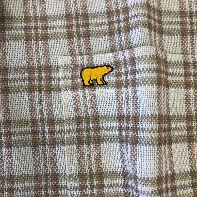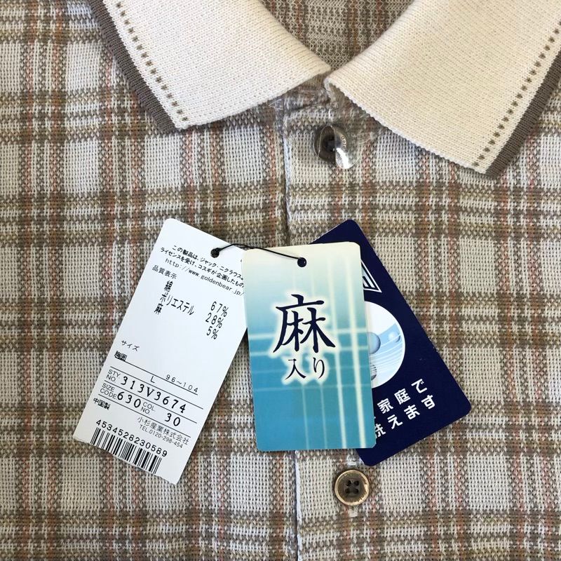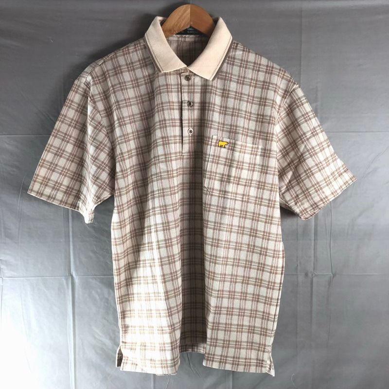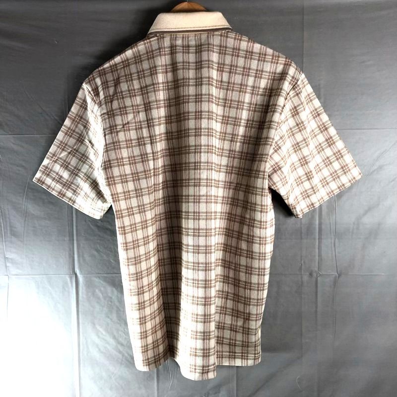 ゴールデンベア Golden Bear ポロシャツ タグ付き チェック ロゴマーク ベージュ系 ブラウン系 Lサイズ 2025091000065