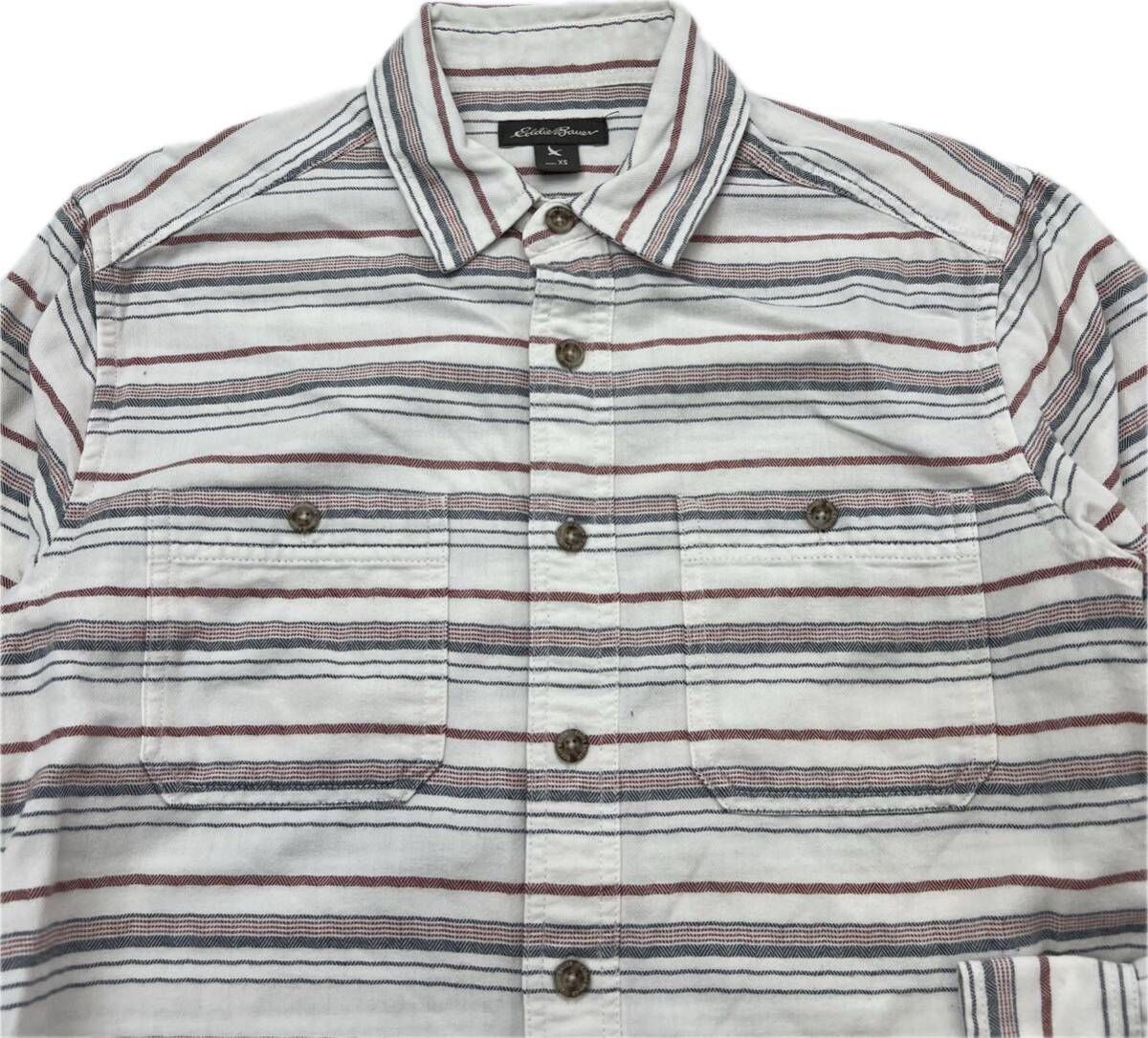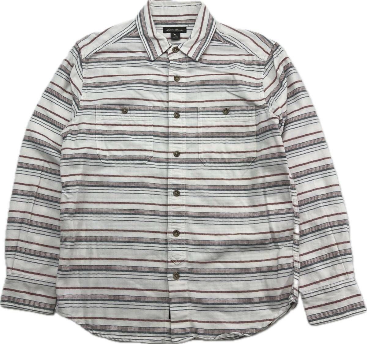 Eddie Bauer ☆ マルチ ブラック レッド ボーダー シャツ 長袖 ホワイト 白 XS 通年 アメカジ アウトドア 古着 エディーバウアー■S3586