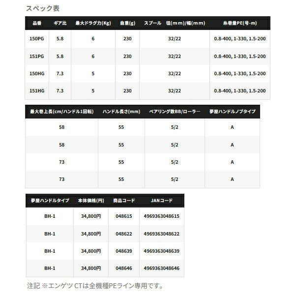 ◆軽量・ロープロファイルのコンパクトボディに先進の機能を惜しげもなく搭載。NEWエンゲツCTは、フォールレバーやデジタルカウンターといった高性能を手ごろな価格帯に凝縮したコストパフォーマンスが魅力。中上級者はもちろん、これから始める初級者にも鯛ラバゲームの醍醐味を存分に体感できる一台に仕上がっています。前作からの進化点は、ブレーキをかけてもハンドル回転が重くならない新型フォールレバーや、巻上距離アラーム機能が付いていっそう使いやすくなったインカウンターの搭載。さらにハンドルは51mmから55mmへとロング化して巻き上げの負担を軽減しつつ、巻き感度も両立。アップデートを行いながら、総重量は前作より約20g軽量化。ラインナップはHG、PGにそれぞれ右ハンドルと左ハンドルを展開。幅広いシチュエーションに対応可能な盤石のスペックで近海の鯛ラバゲームをフルカバーします。