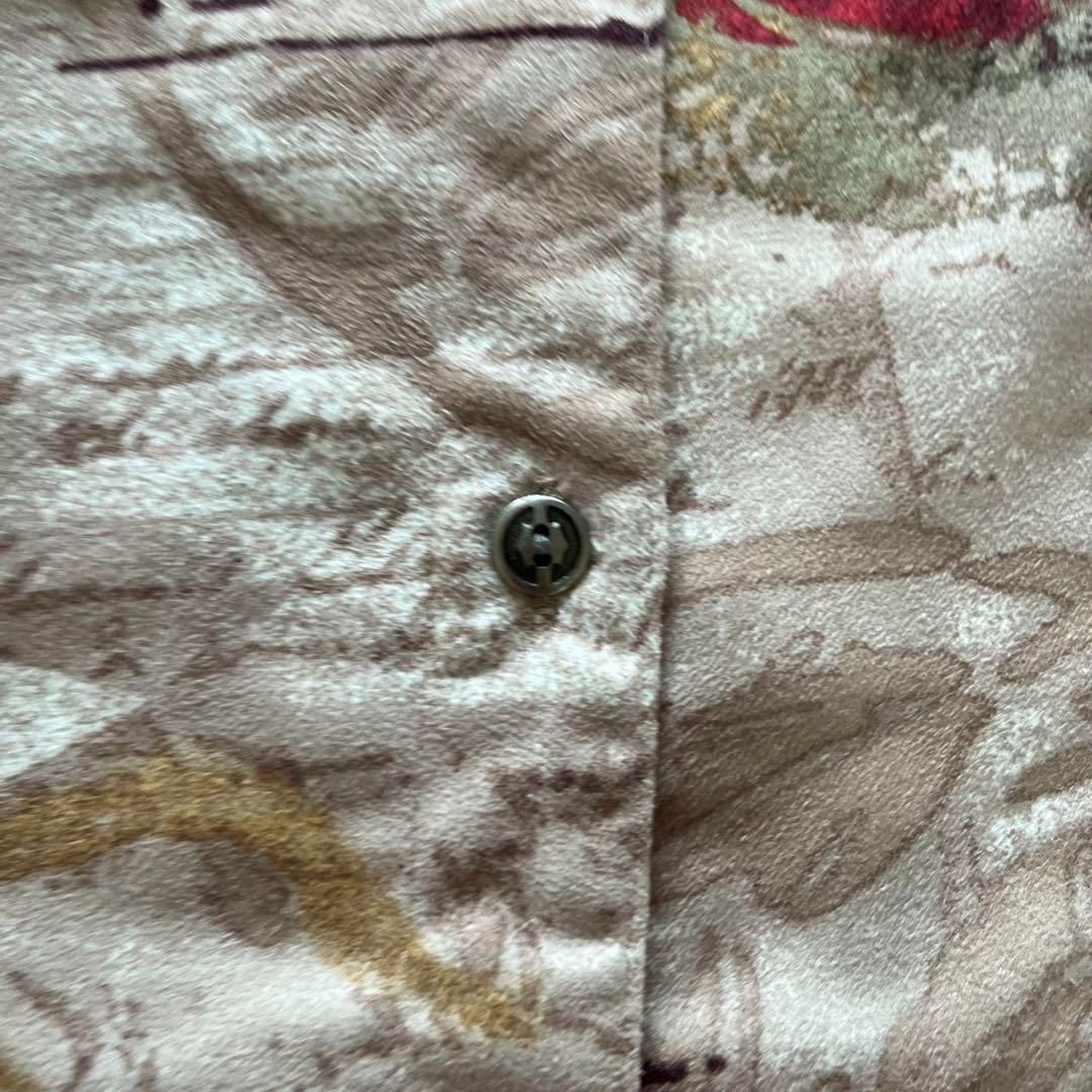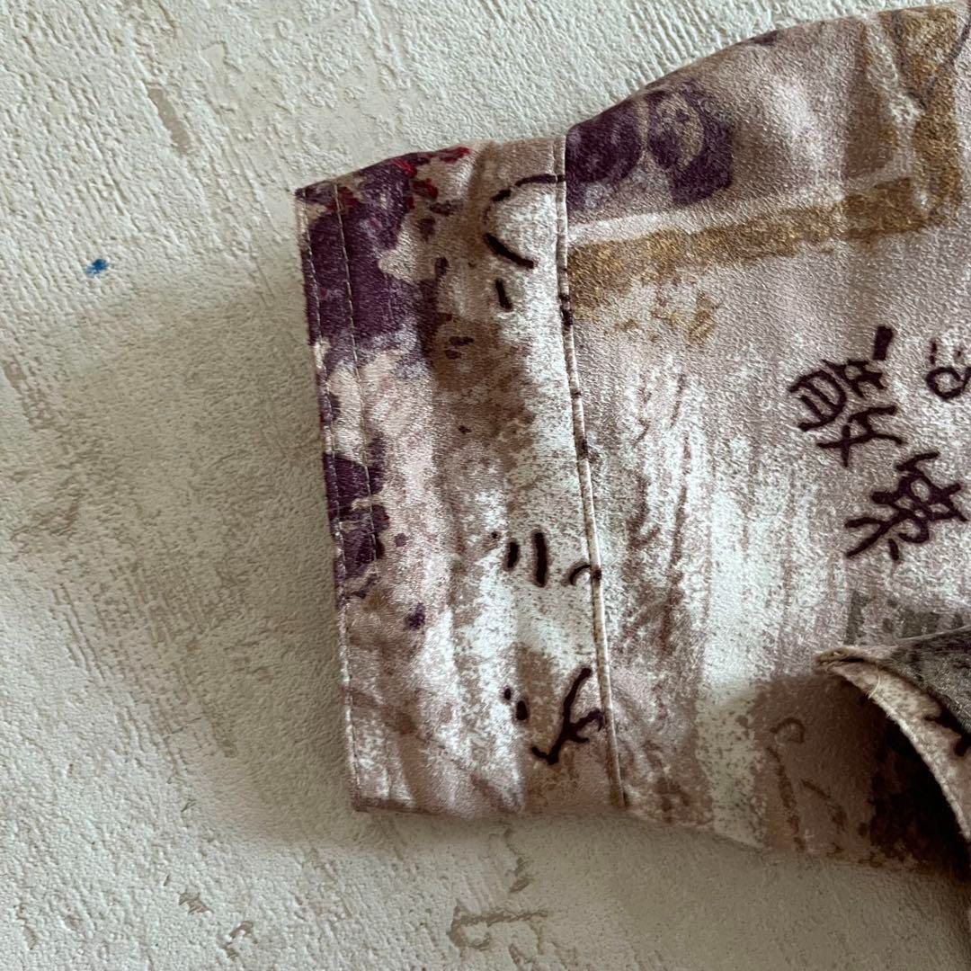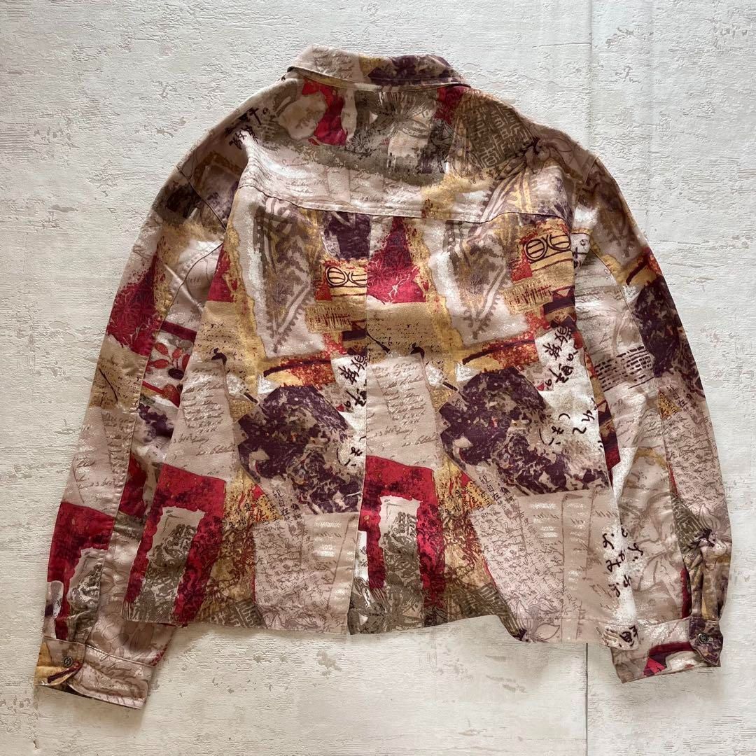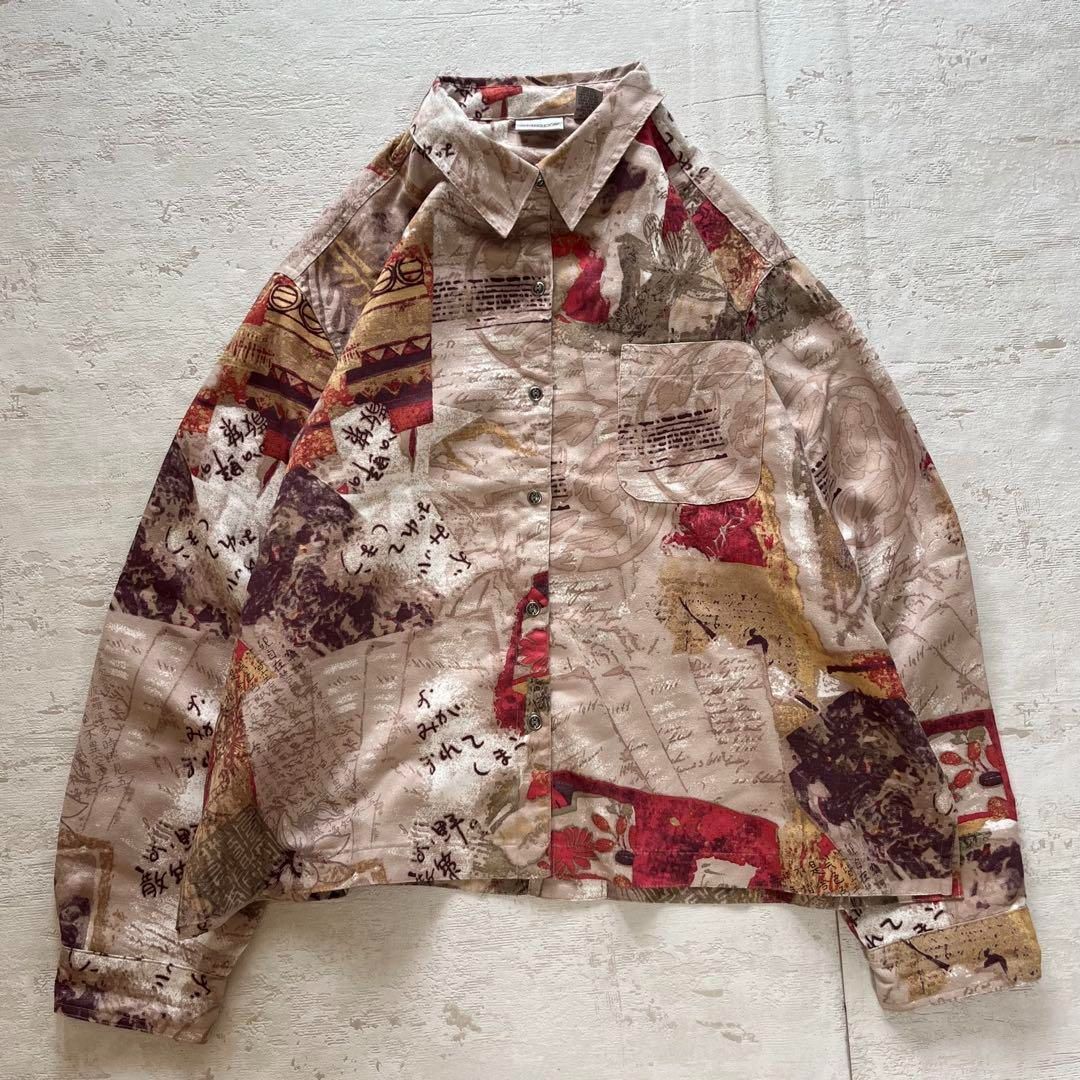 希少な総柄シャツジャケットです。ベージュ系をベースに、赤やブラウンを織り交ぜたアート調のプリントが存在感を放つ一枚。しっかりとした生地感で、シャツとしてはもちろん、軽い羽織りジャケットとしても活躍します。ユニセックスで着用可能なデザインは、古着コーデやレトロスタイル好きの方におすすめ。スラックスやデニムとの相性も良く、幅広いシーンで着回しできます。状態も良好で目立ったダメージはありません。個性を引き立てる1着をぜひ。