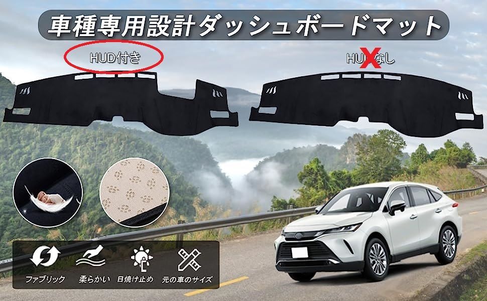 トヨタ ハリアー 80系 4代目 HARRIER 専用 (HUD付き) ダッシュボードカバー ダッシュボードマット ハリアー80系専用アクセサリー 内装 日焼け防止 ダッシュボードライト保護マット