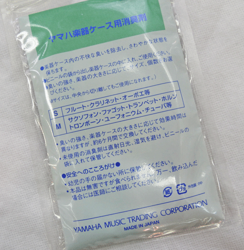 楽器総合メーカー:ヤマハから発売されている楽器ケース用の消臭剤です。発売当初から在庫を行っておりましたが、当店ご利用のお客様にはあまり需要が見られず、在庫一掃目的で特別価格でご提供させていただきます。やさしい管楽器プレーヤーの客様、おひとついかがでしょうか?