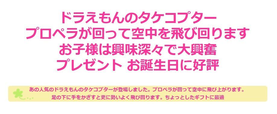 皆な大好きなあのドラえもんシリーズに空中をふわふわ飛び回るタケコプターが出来ました。