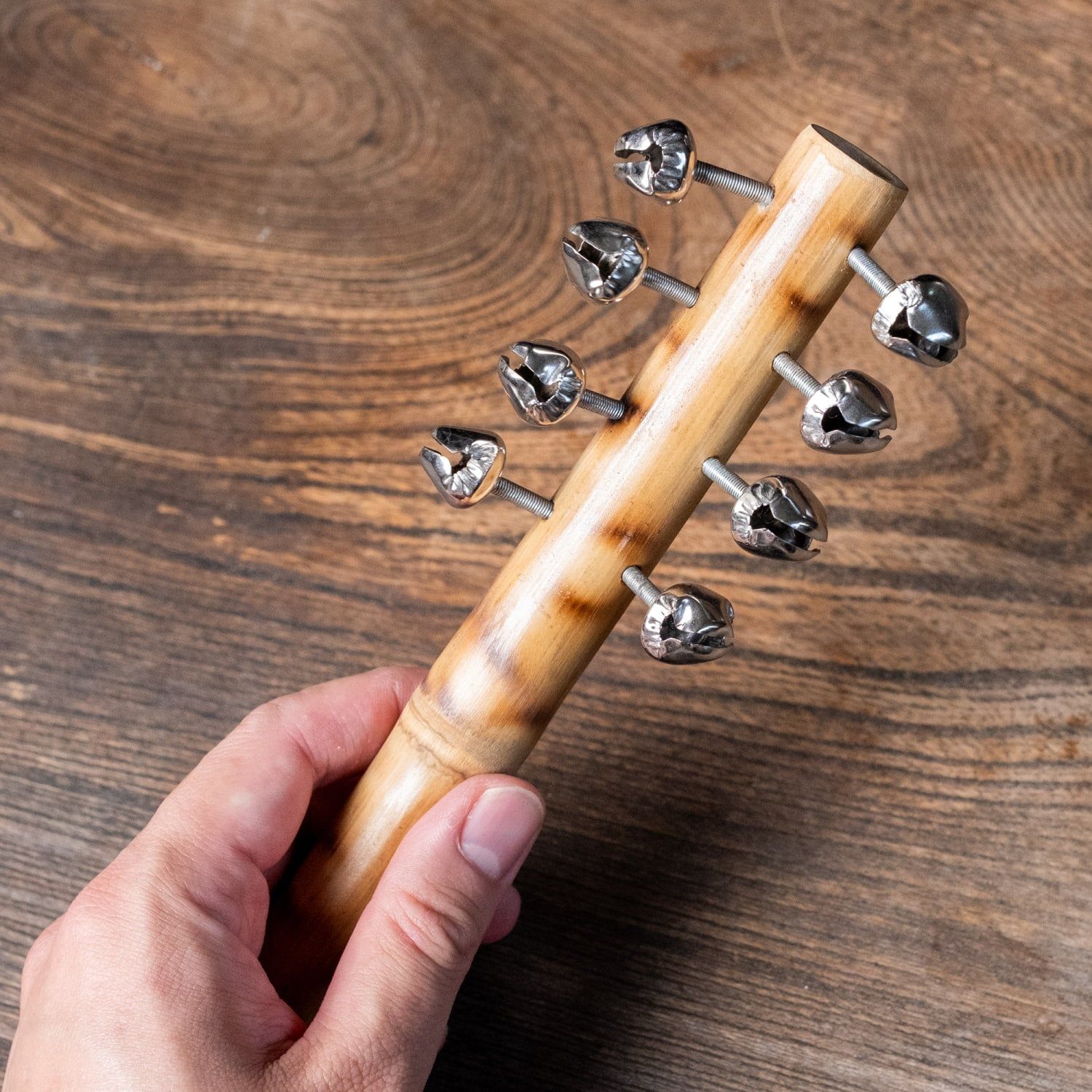 商品タイプパーカッション:PercussionInstruments素材木製おことわり天然素材を使用しハンドメイドされている為、使われている木の部分により木目や色合いなどに差異がございます。鈴は部分的に、かすかにサビがあることがございます。また、ほとんど変わりませんがサイズにも若干の差異がある場合もございます。