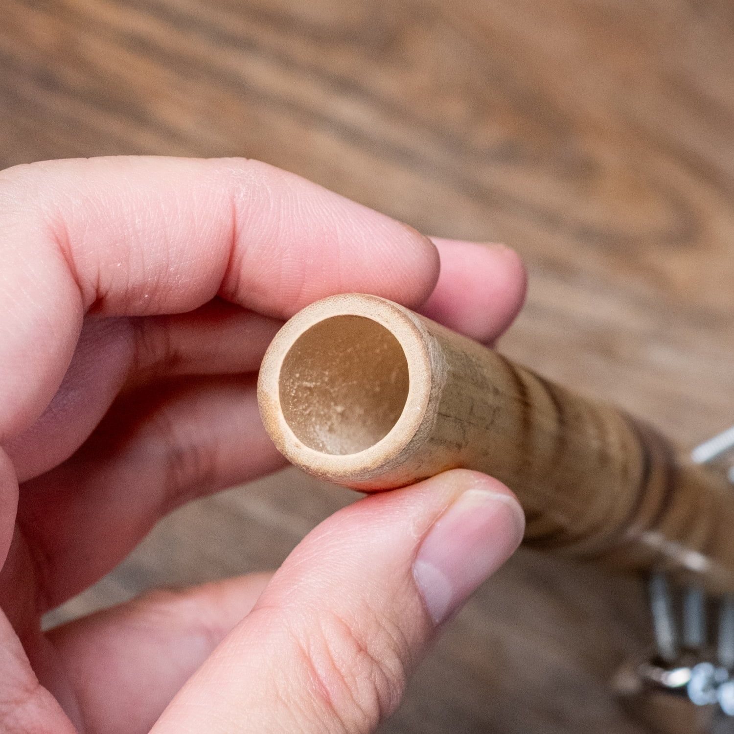 オーケストラで使われるような、本格仕様のタイプは音が大きくでますが、その分重さもあり扱いにくいです。一方こちらのスレイベルは、中が空洞の竹製なので軽く扱いやすく、子どもたちの演奏会などにも使いやすいのでオススメです。