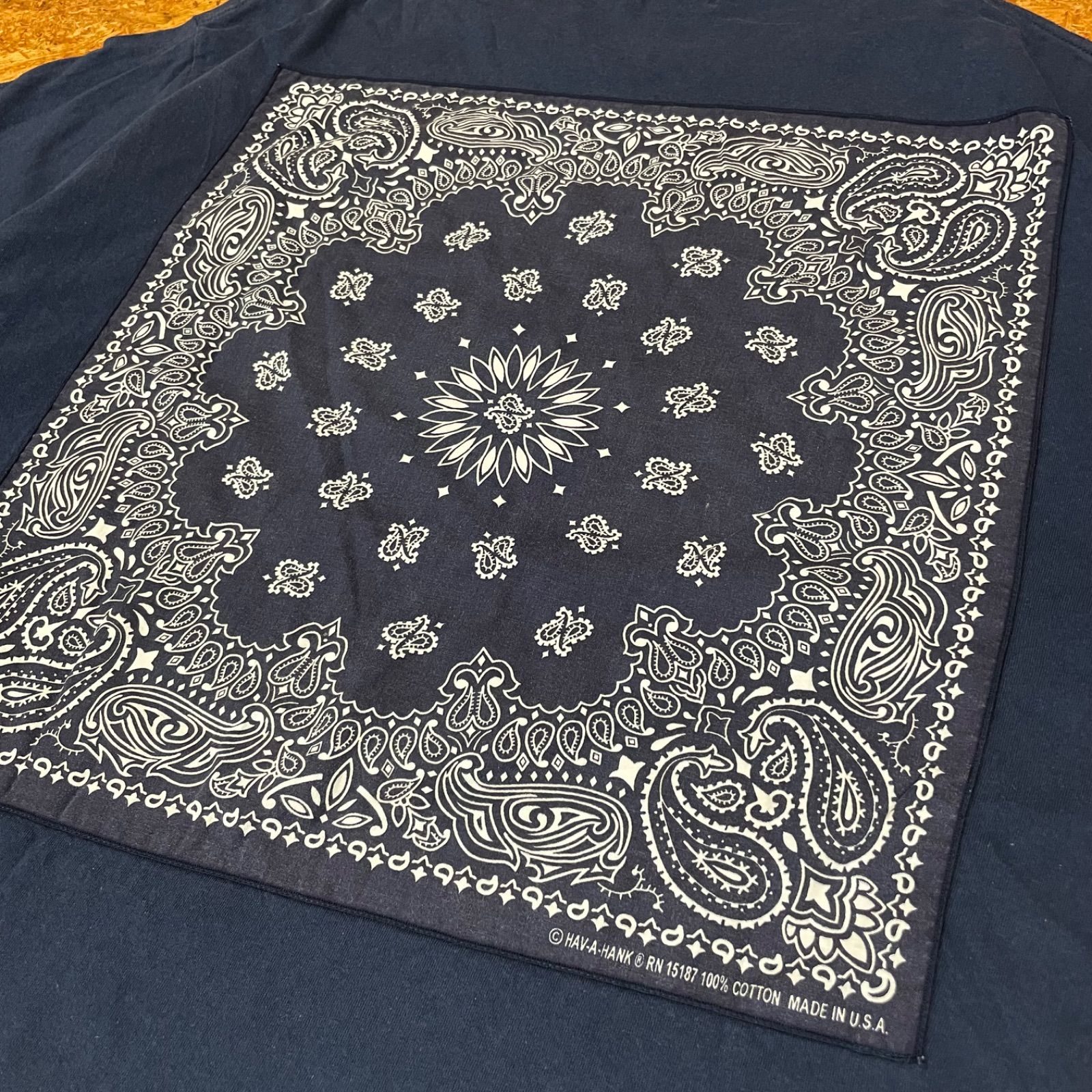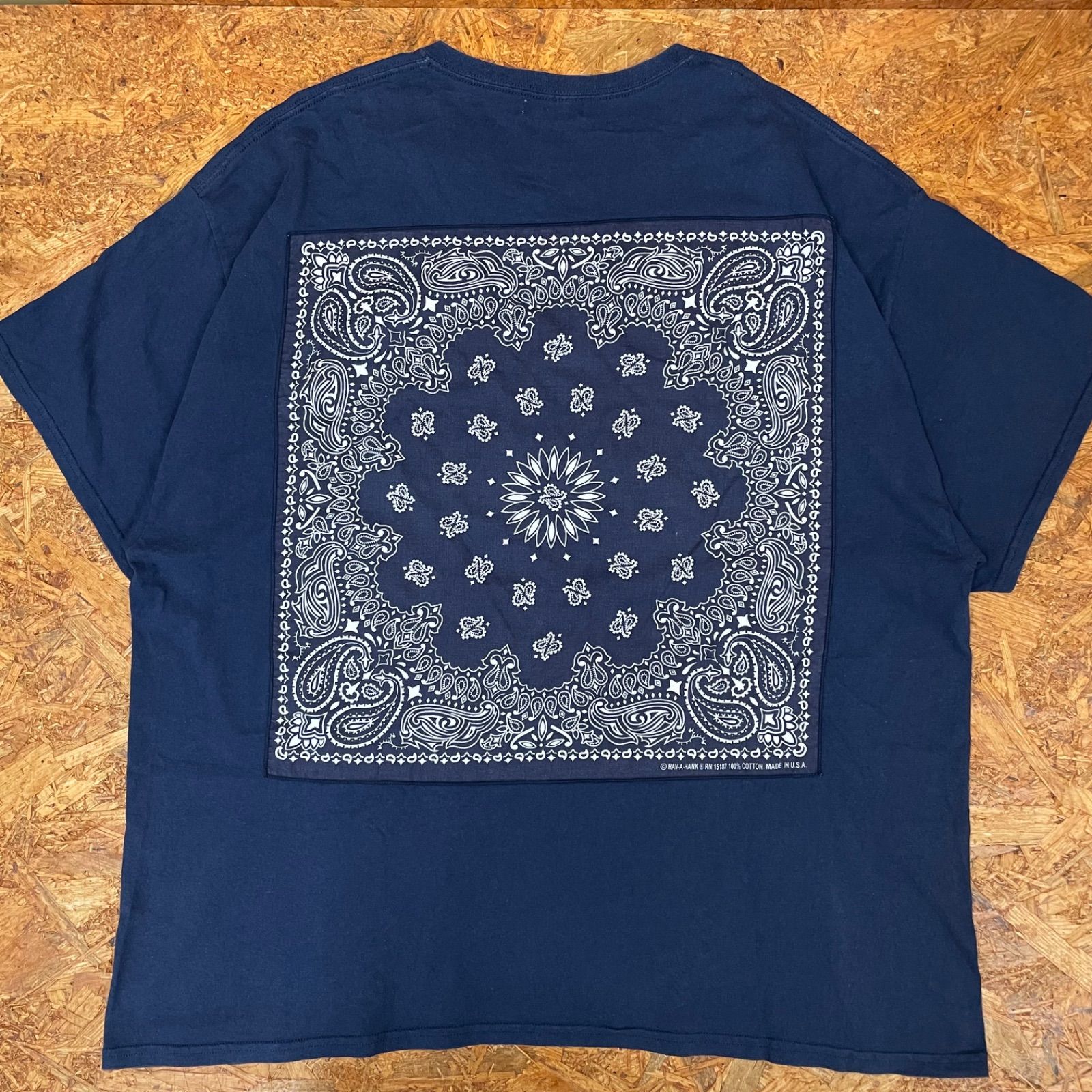 ・商品名:USAバンダナ使用 HAV-A-HANK × FREAK’S STORE 別注 ビッグシルエット Tシャツ ネイビー 半袖 ハバハンク フリークスストア オーバーサイズ ペイズリー ユーズド USED 古着