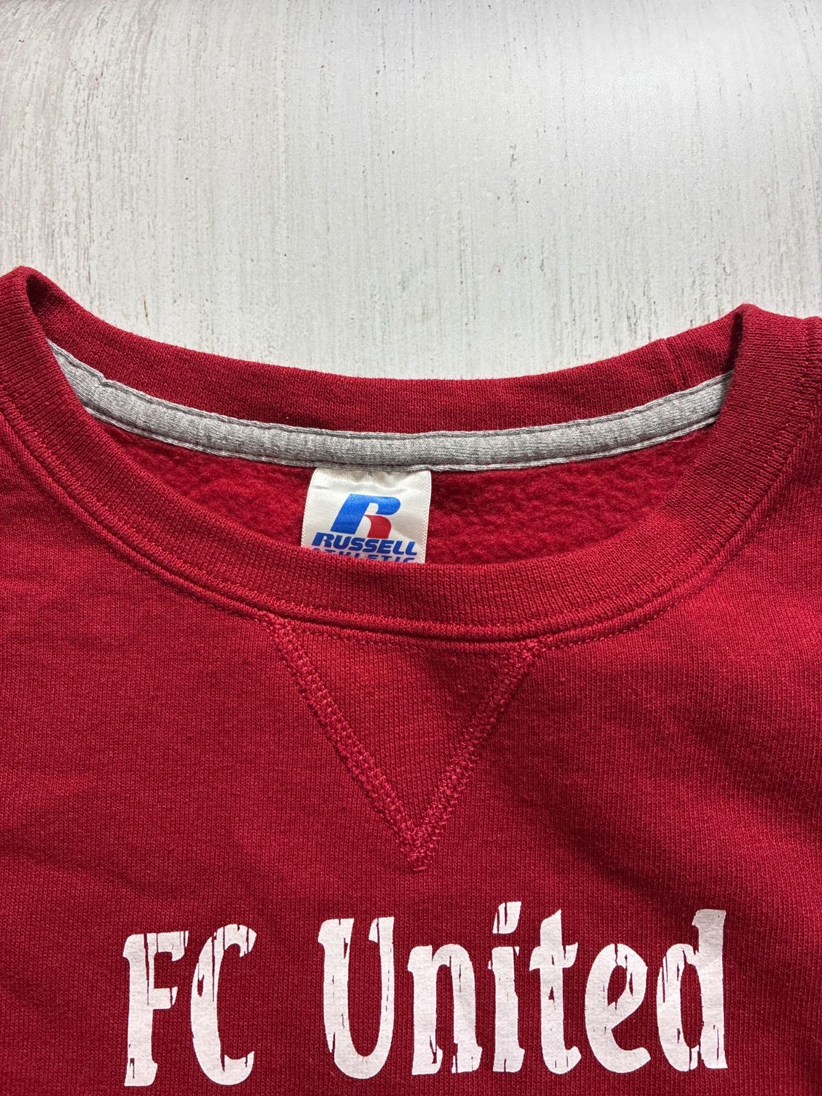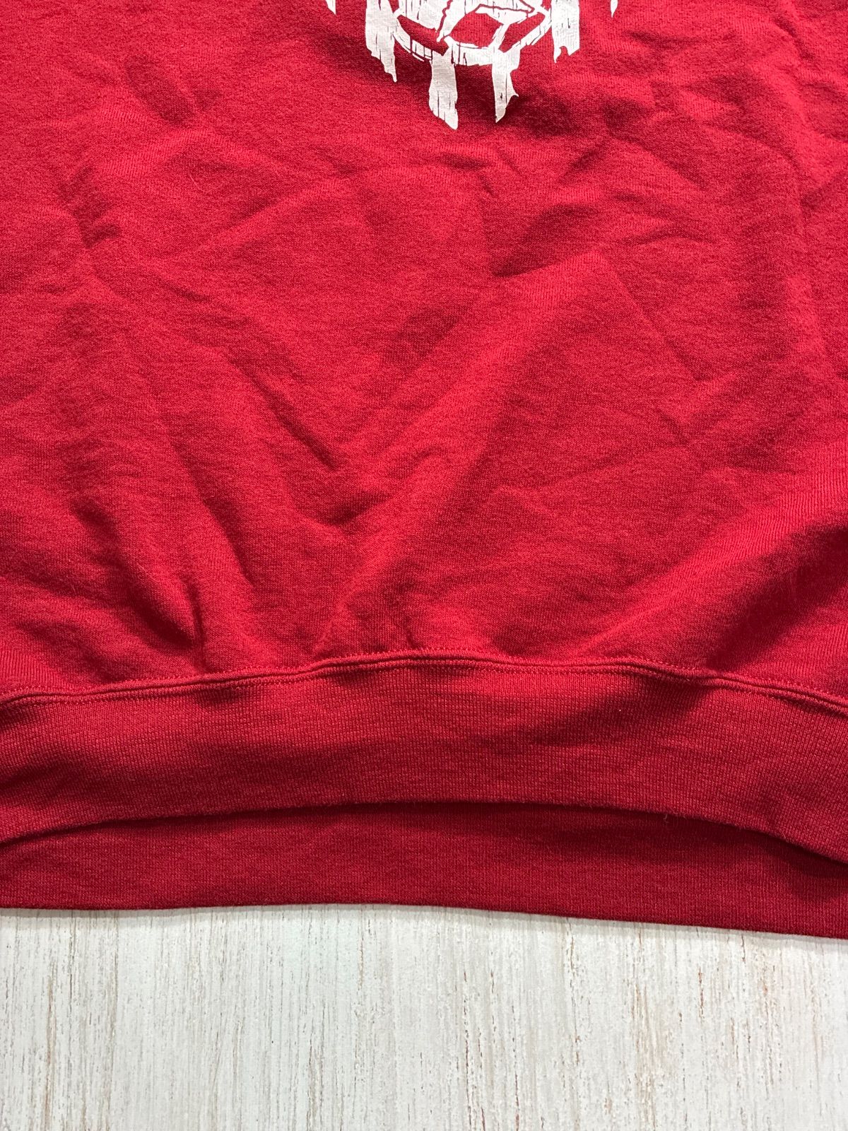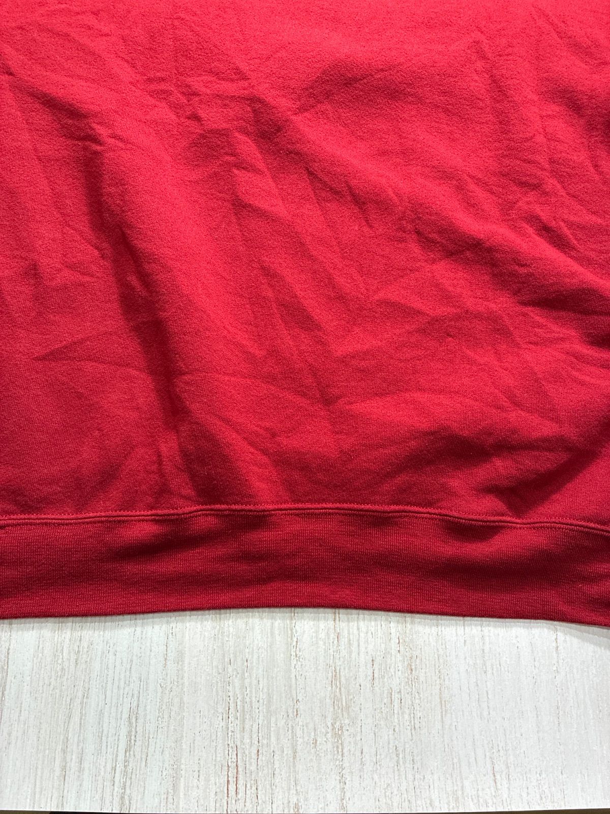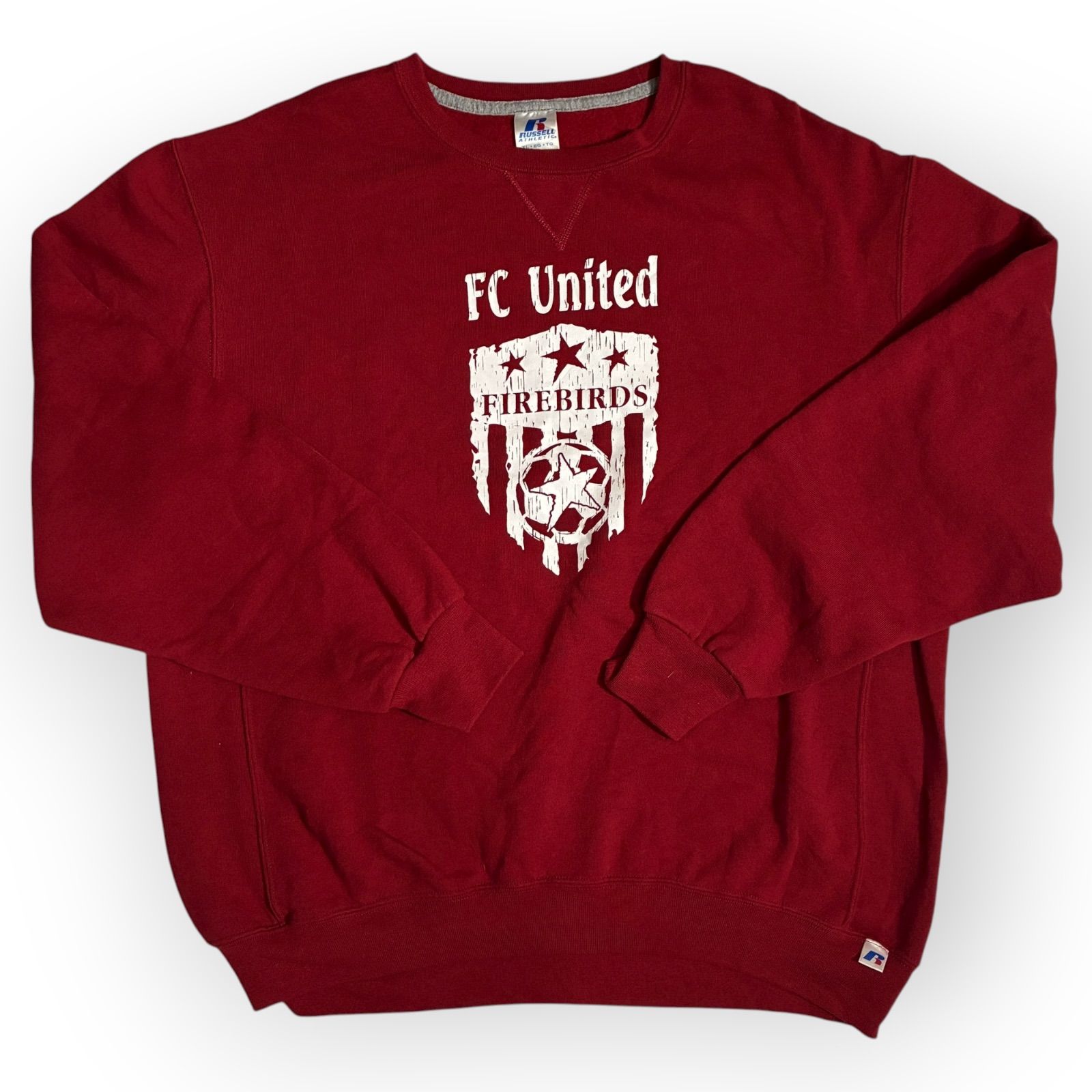 アメカジの定番である鮮やかなレッドのボディに、フロントには「FC United FIREBIRDS」のチームロゴがプリントされています。あえてかすれたような「クラックプリント」が採用されており、手に入れたその日から古着ならではのこなれた雰囲気を楽しめます。