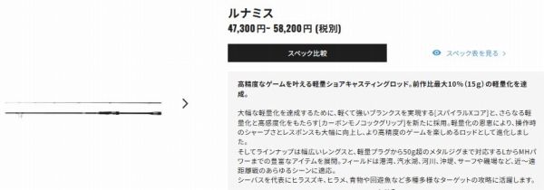 超軽量を追求したショアキャスティングロッド、新生「ルナミス」。