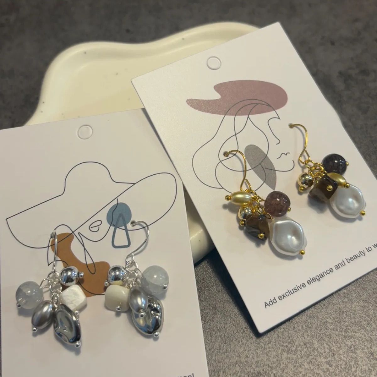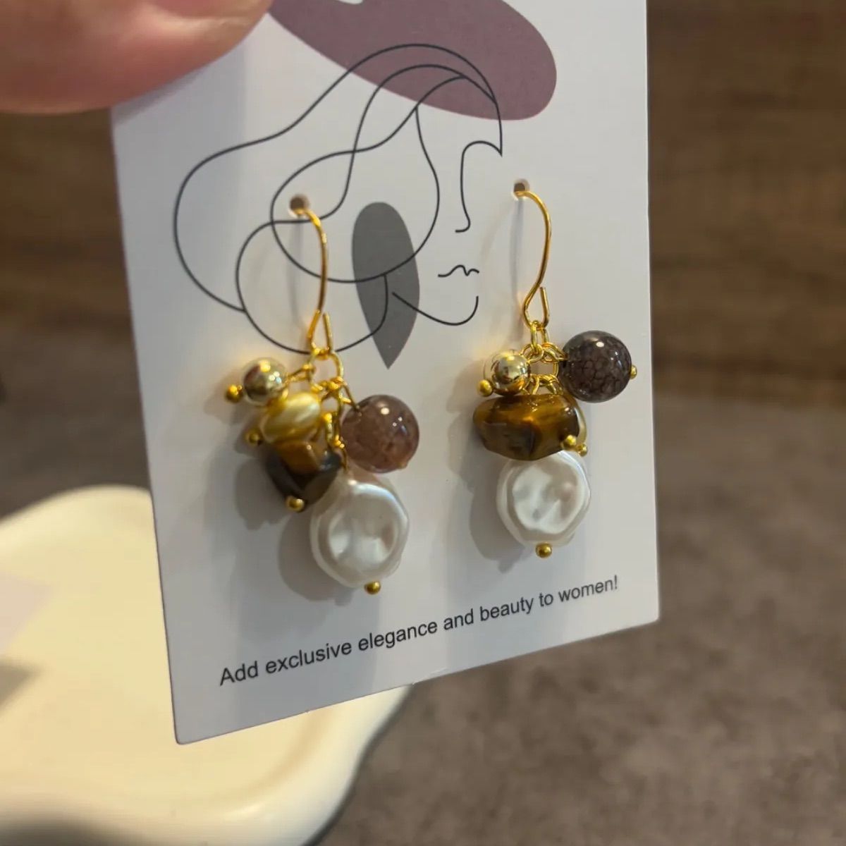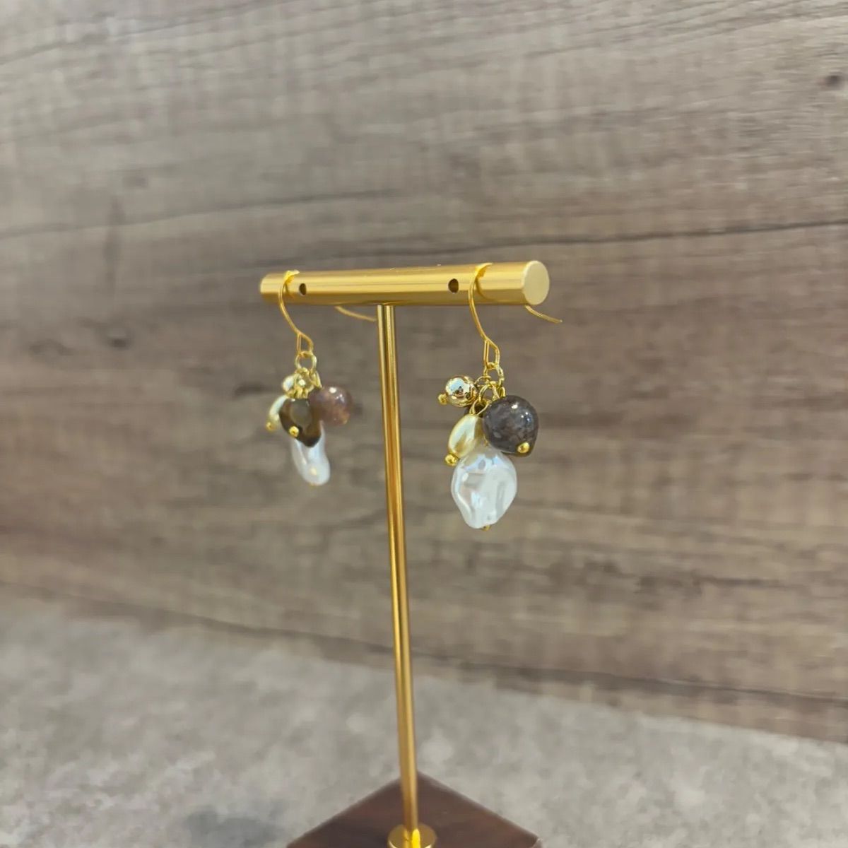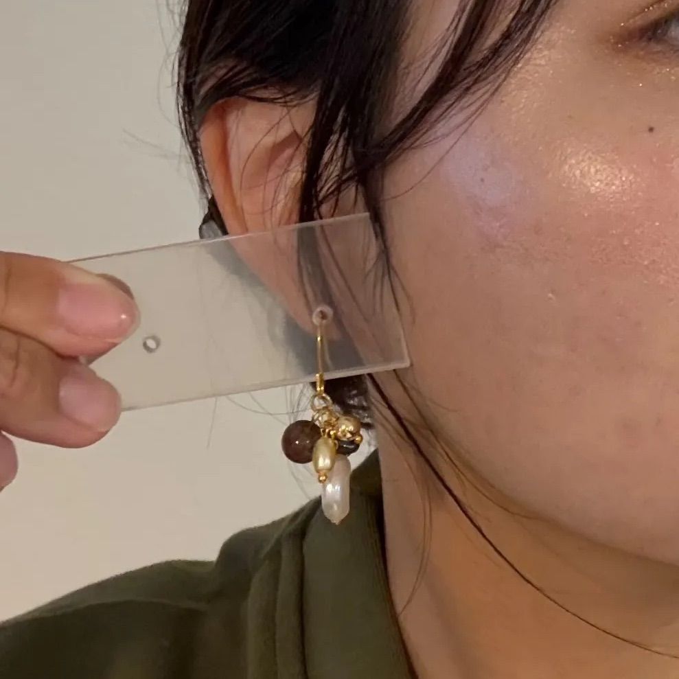 温かみのあるブラウン×ゴールドのニュアンスカラーが耳元で揺れ、シンプルなコーディネートに華やかさをプラスしてくれます!