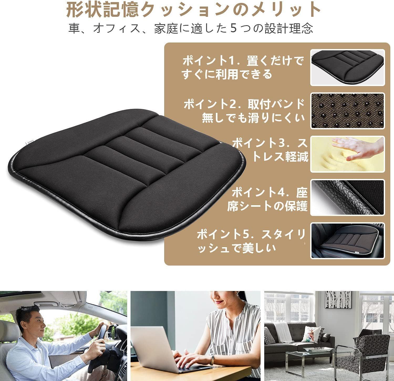 シートクッション 座布団 カー用品 通気性 車用 運転 自宅用 オフィス 柔らかい 滑り止め ドライブ 記憶フォーム 車用マット 自動車用 カーシート プレゼント 贈り物 車クッション ブラック
