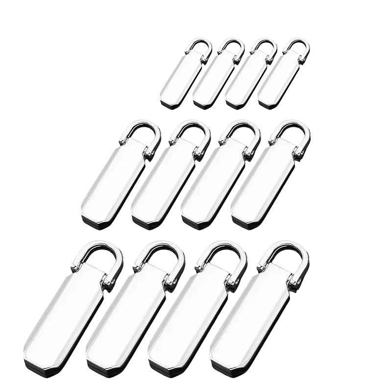 商品名:DEVENTORZ ファスナー 交換用 12個入り 金属製 チャック 取っ手 DIY 手芸 手作り 裁縫 バックパック/財布/服/靴 メタルジップタブ プル 引き手のジッパー修理用(シルバー)