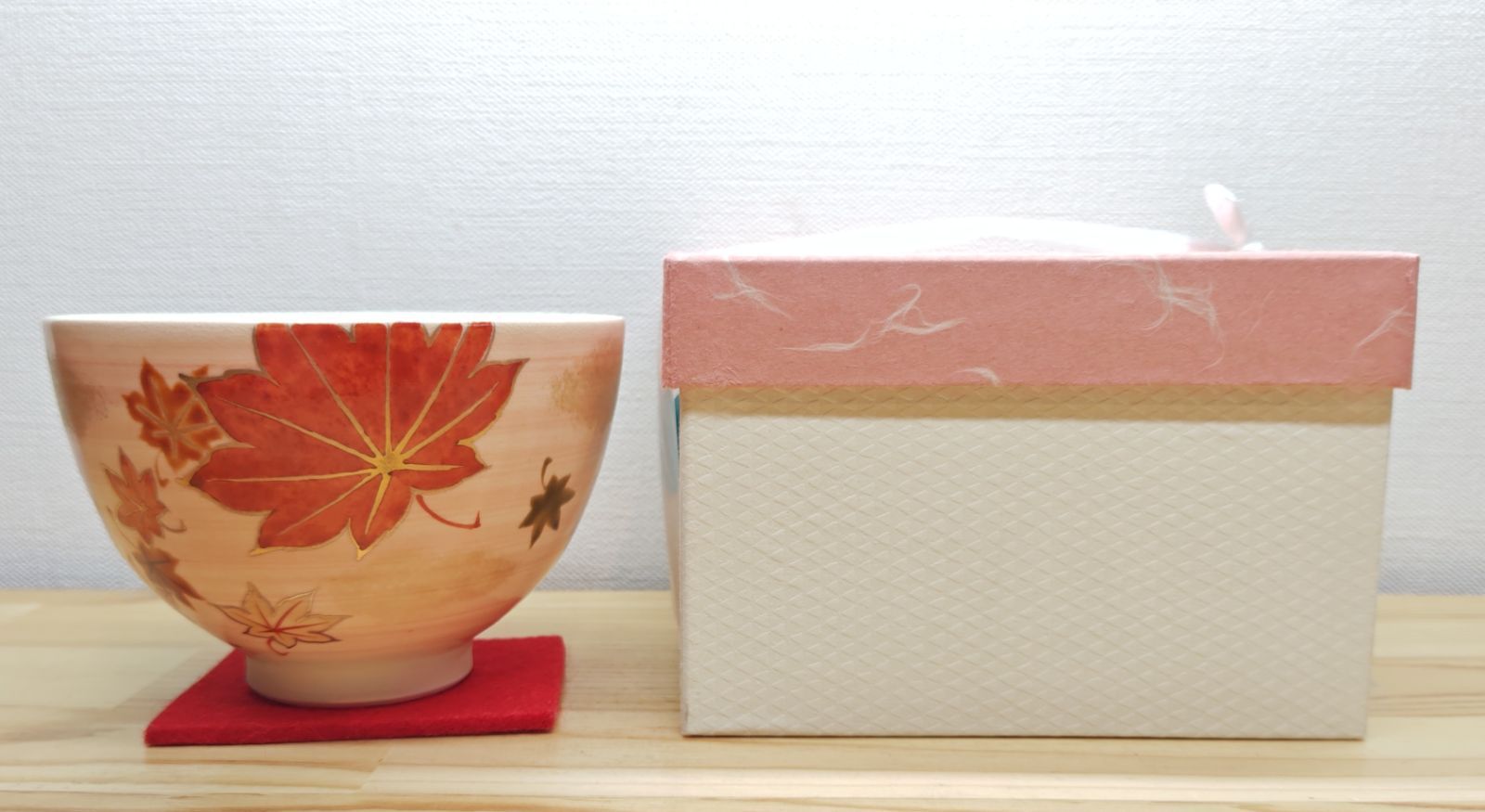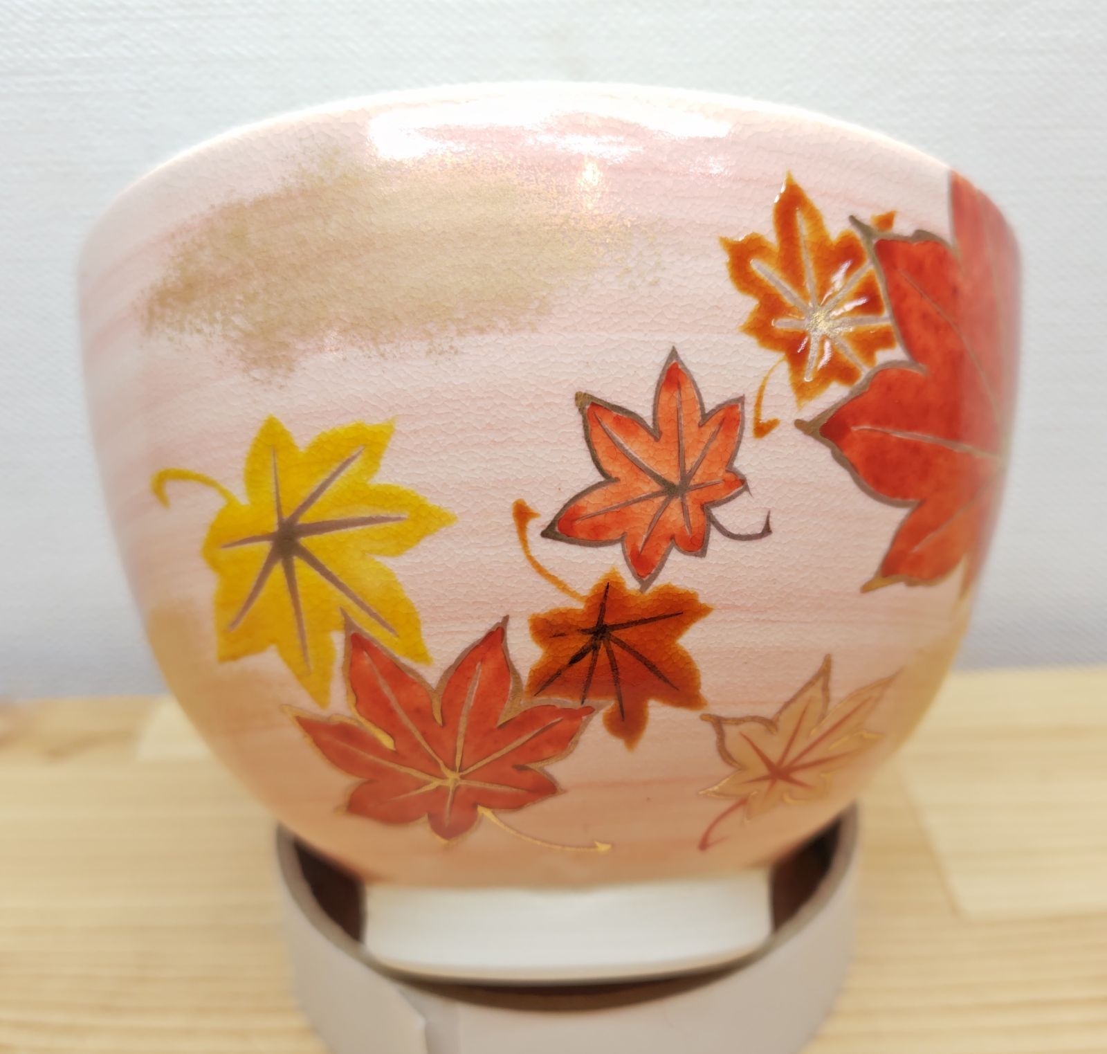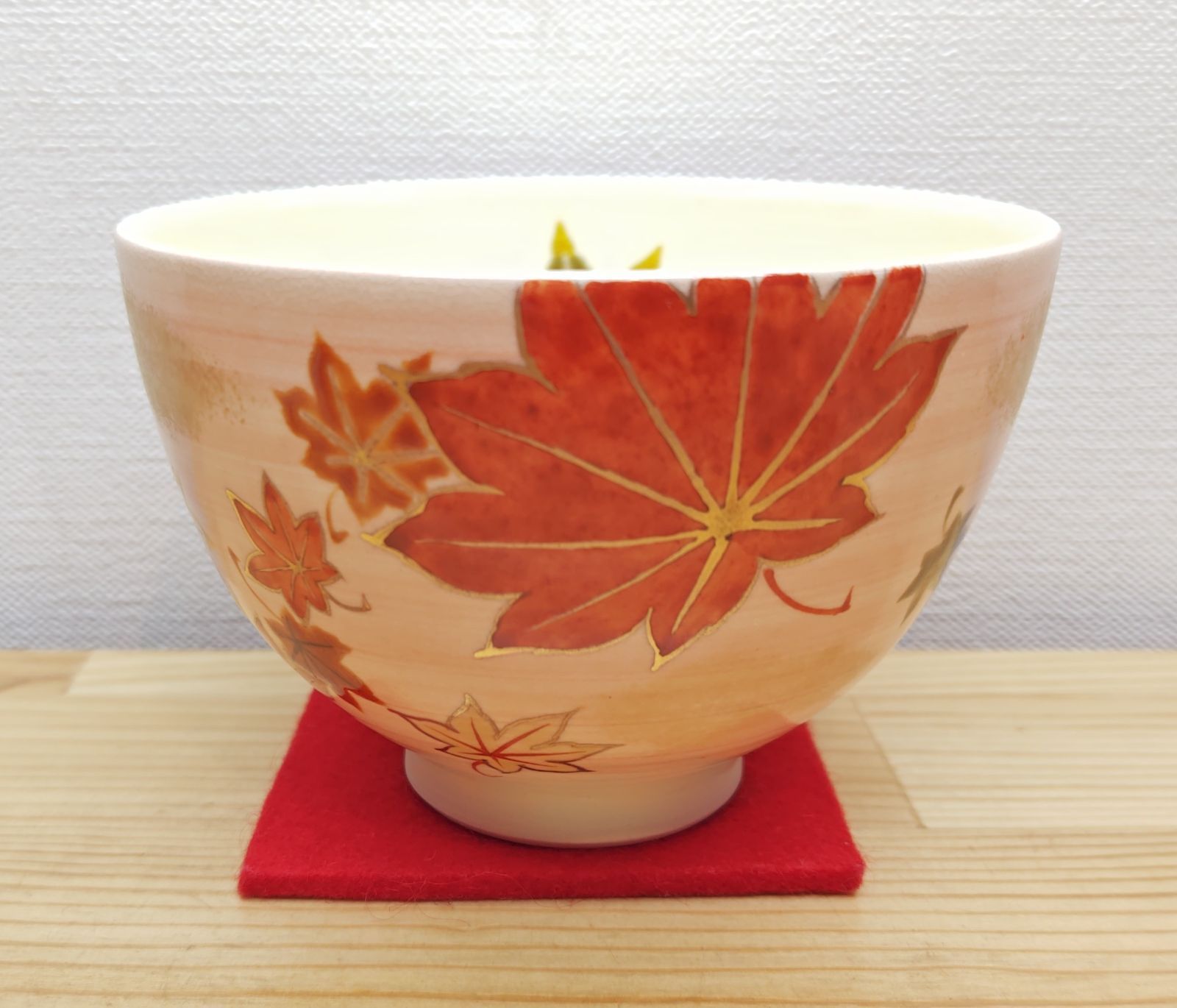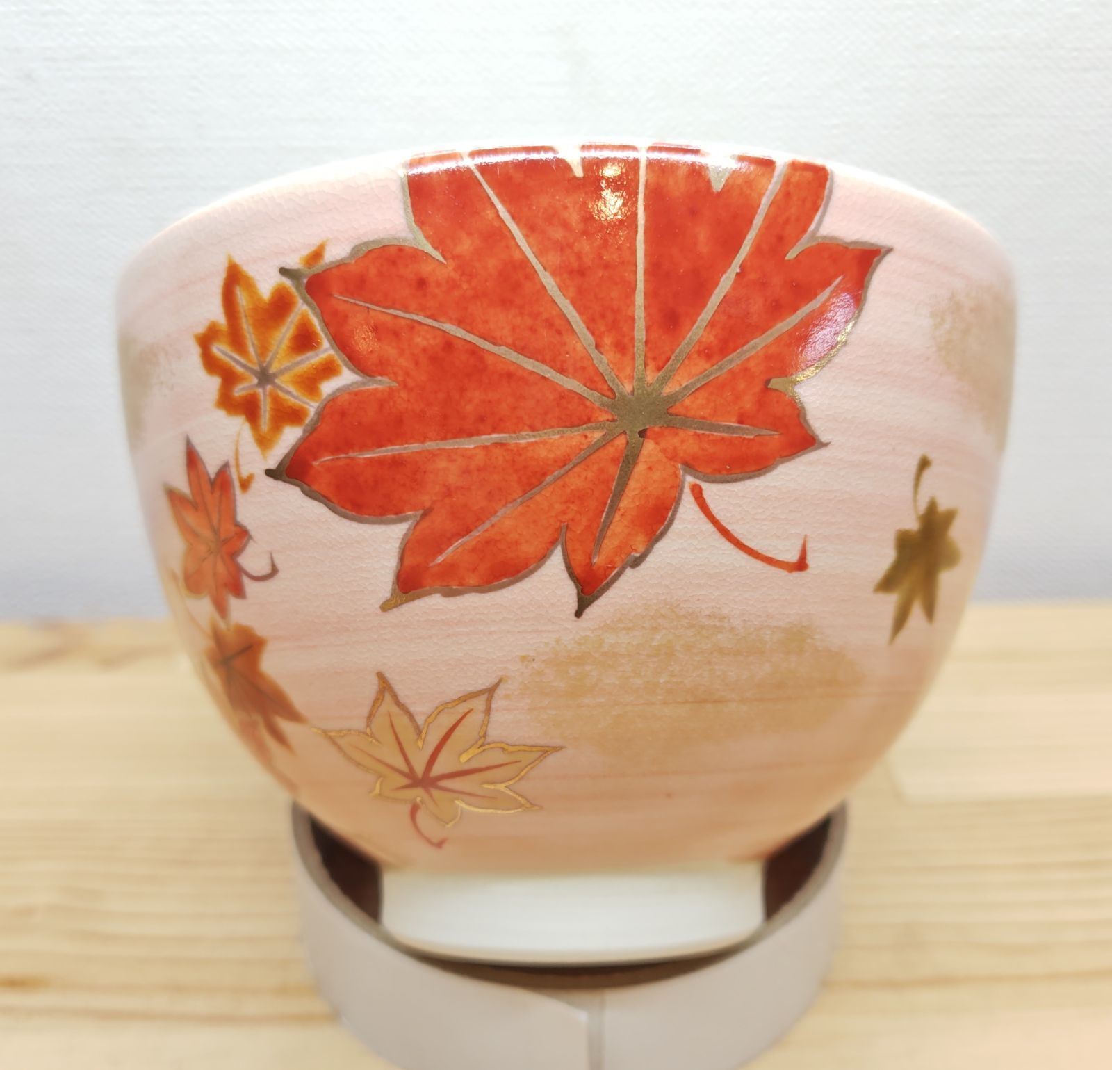 大小の紅葉の葉っぱが印象的なお茶碗で、見た目も秋だなと感じる事が出来ます。