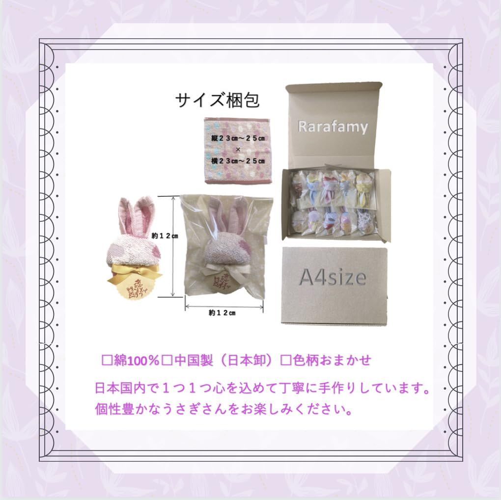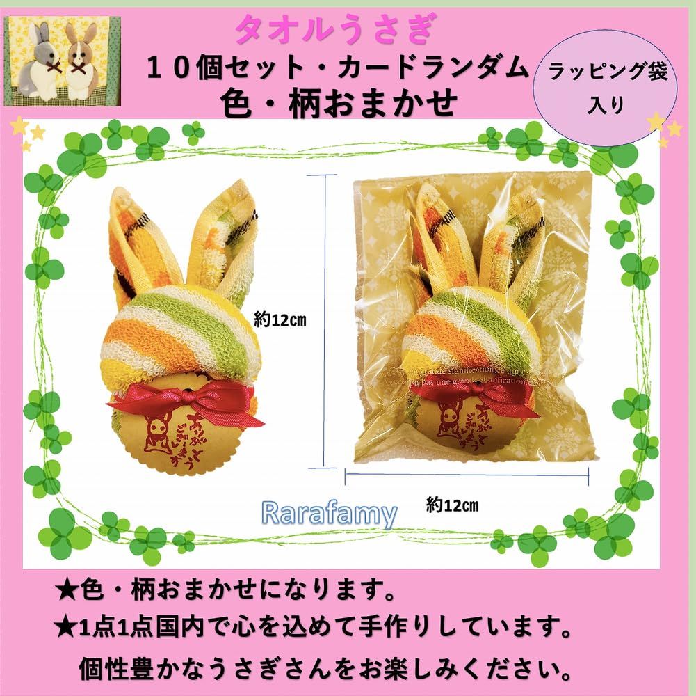 Rarafamy(ララファミー)ハンドタオル タオルハンカチ メッセージカード付 手作り うさぎ お礼 景品 退職の挨拶 転勤の挨拶 転校の挨拶 お返し ホワイトデー 粗品 ラッピング袋入り 柄おまかせ (10個セット(カードランダム)