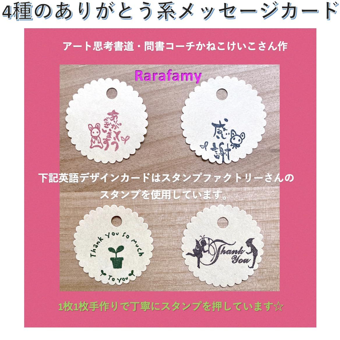 うさぎさんの首にはクラフトカードがぶら下がっています。メッセージは4種類(ありがとうございます・感謝・Thank you・Thank you so much To you)カードはランダムに入ります。Thank you・Thank you so much To youのカードはスタンプファクトリーさんのスタンプを使用しています。(カードのカスタマイズは不可)