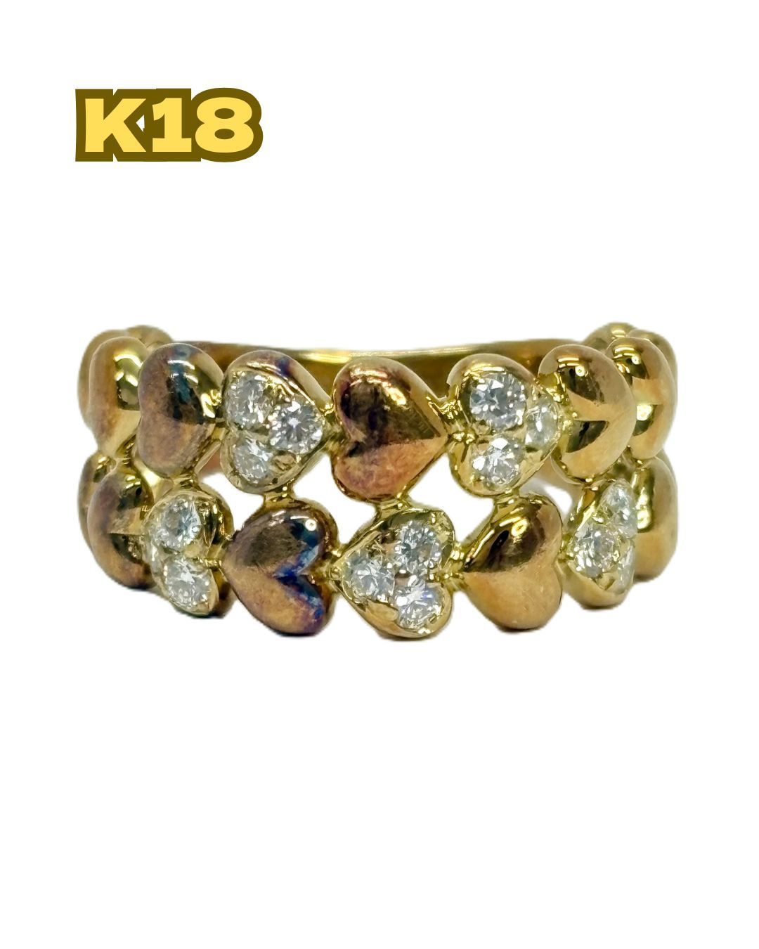 【K18】 指輪 リング ダイアモンド入り ハート 6.1g 12号
