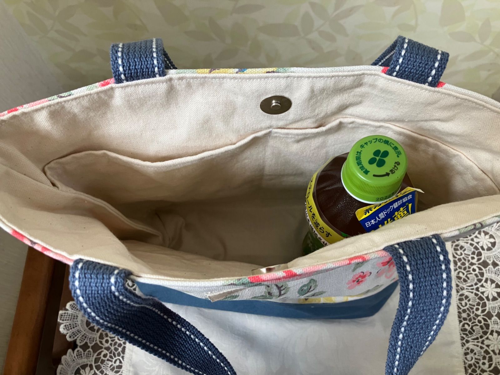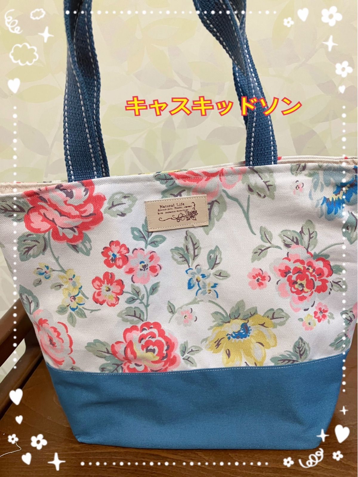 こちらは、キャスキッドソン生地を使って制作したハンドメイドのトートバッグです。 お出かけや、お買い物、全ての場面で使える大きさのバッグです。500mlの飲料水で、大きさご確認下さい。