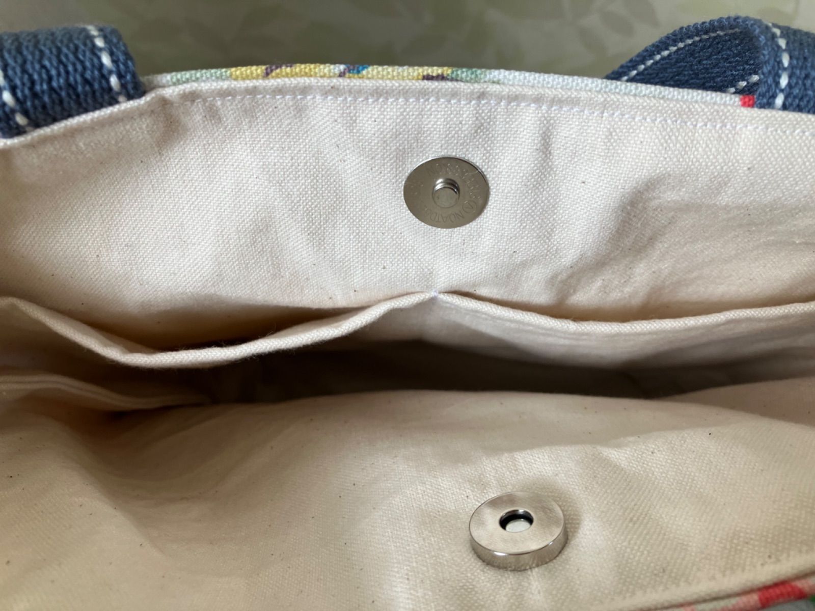 表 裏とも帆布で仕上げましたので、しっかりしています、マグネットボタンやサイドポケット付きで便利です。