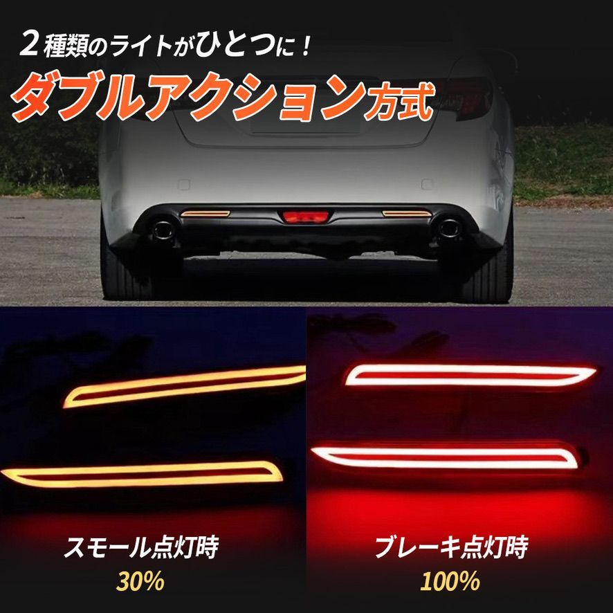 ・ドレスアップ効果と安全性の両立LEDリフレクターを装着することで、車の雰囲気が格段にアップ。スタイリッシュなリアビューを実現しつつ、安全性も強化します。