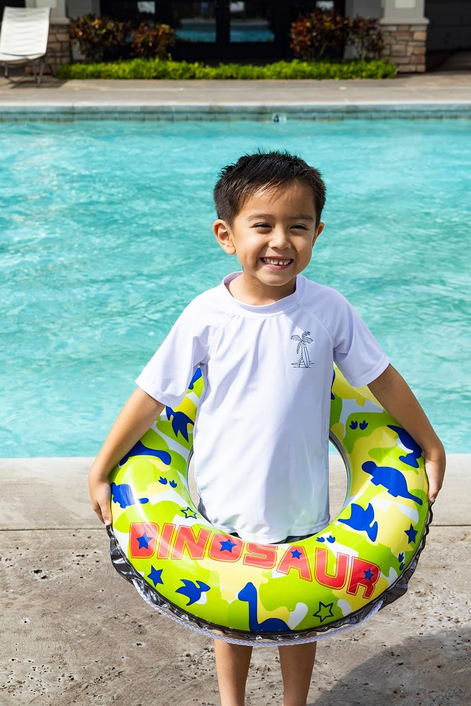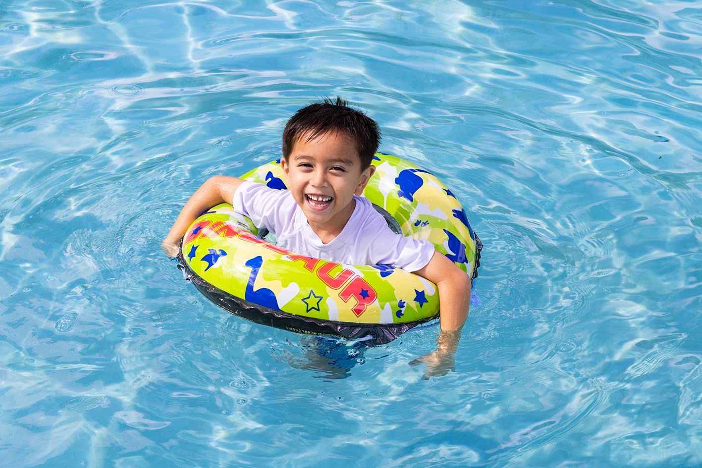 対象年齢4歳~8歳くらいのお子様に最適!。膨らんだ状態のウキワの内周は約85~90cmです。