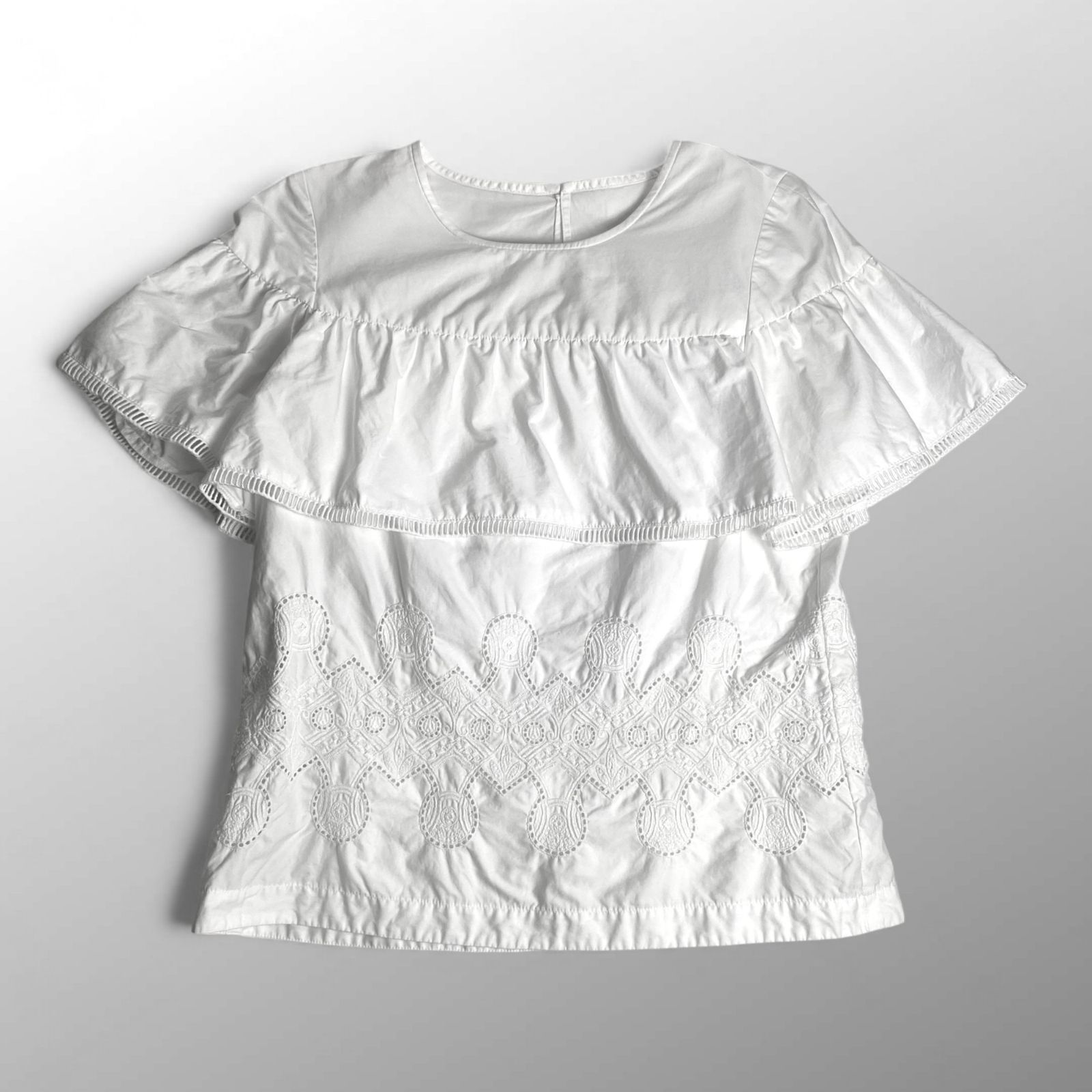 商品名:半袖 エンブロイダリー カットワーク ブラウス ホワイト 参考定価:20,000程度 SIZE:36
