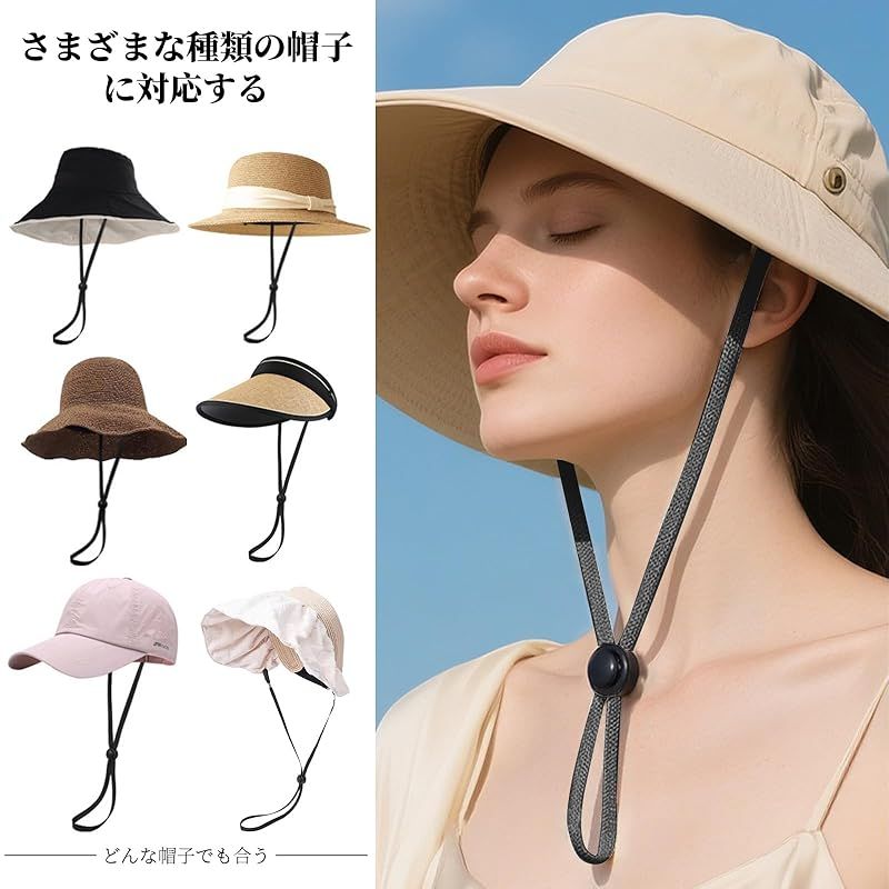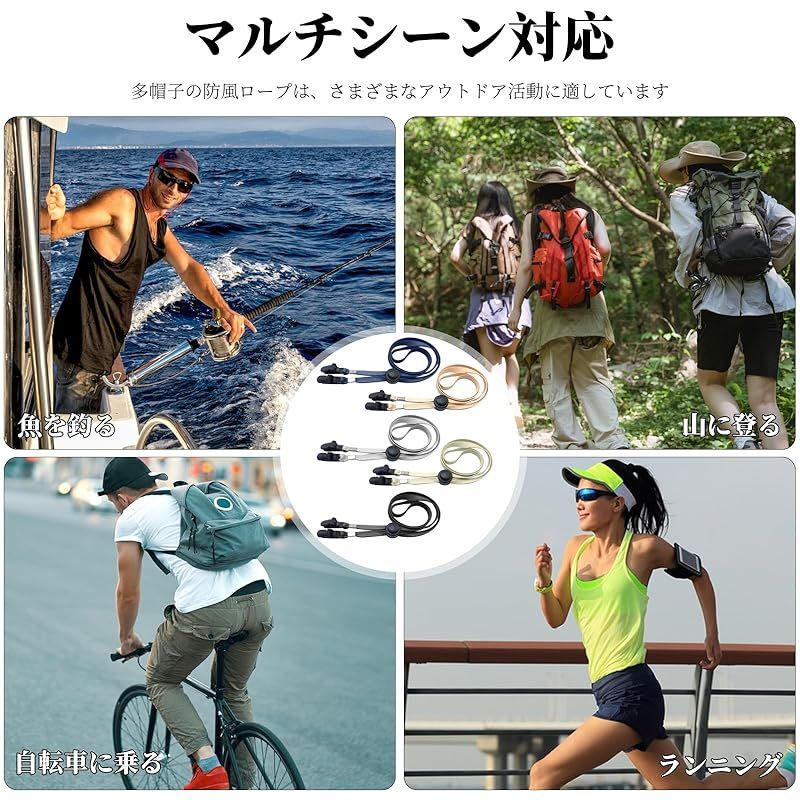 【セット内容】 5色セット(黒、グレー、紺、シャンパン、ベージュ)スポーティーな帽子、カジュアルな帽子、ファッショナブルな帽子など、様々な着用スタイルや個人の好みに合わせて、マッチする防風ロープを見つけることができます。