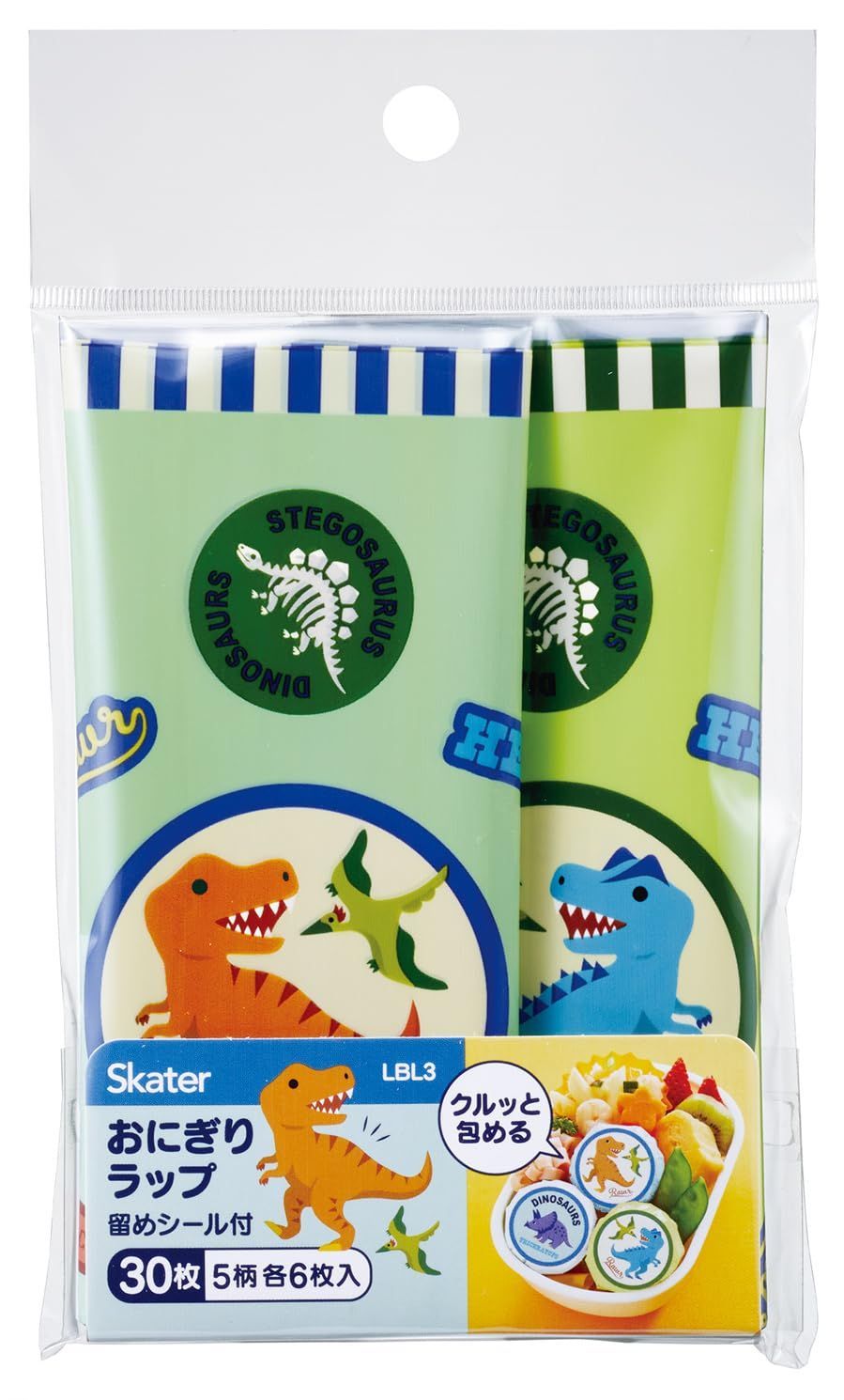 スケーター(Skater) お弁当 おにぎり ラップ 30枚入り 18×18cm 5柄各6枚 留めシール付 ディノサウルス 恐竜 LBL3-A