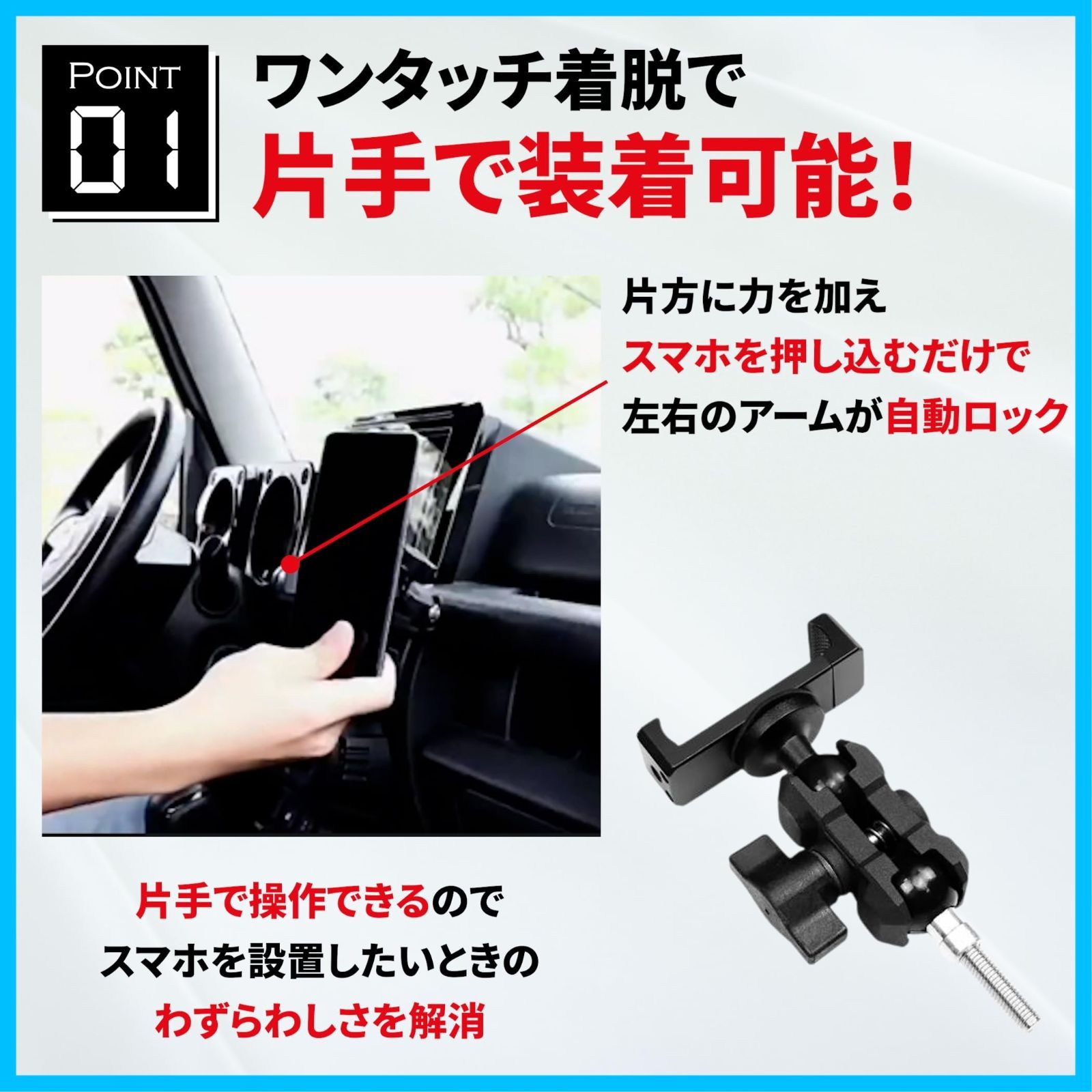 Lezalic スズキ ジムニー スマホホルダー JB64 シエラ JB74 車載ホルダー カスタム アクセサリー 車用 内装 パーツ (ブラック)