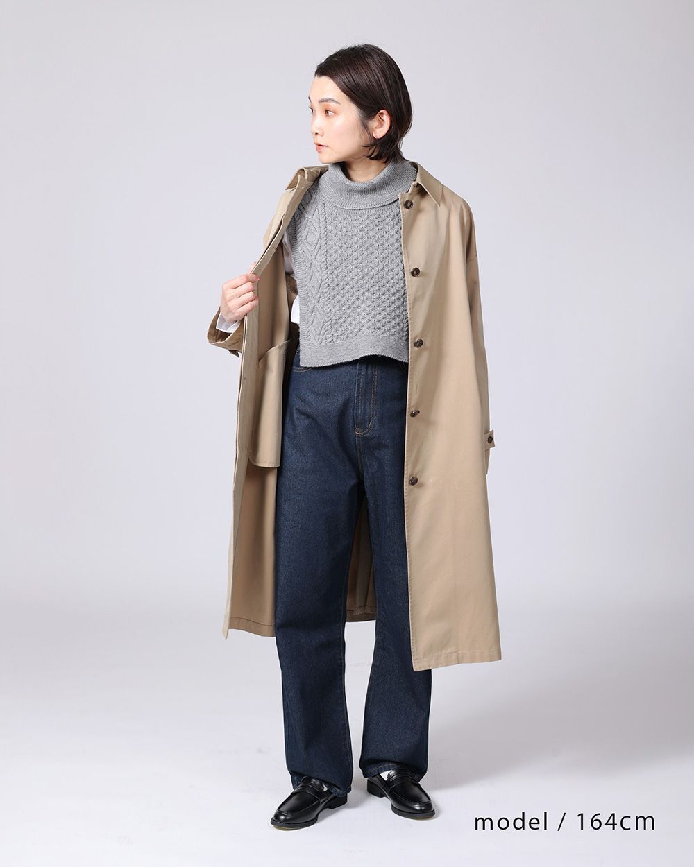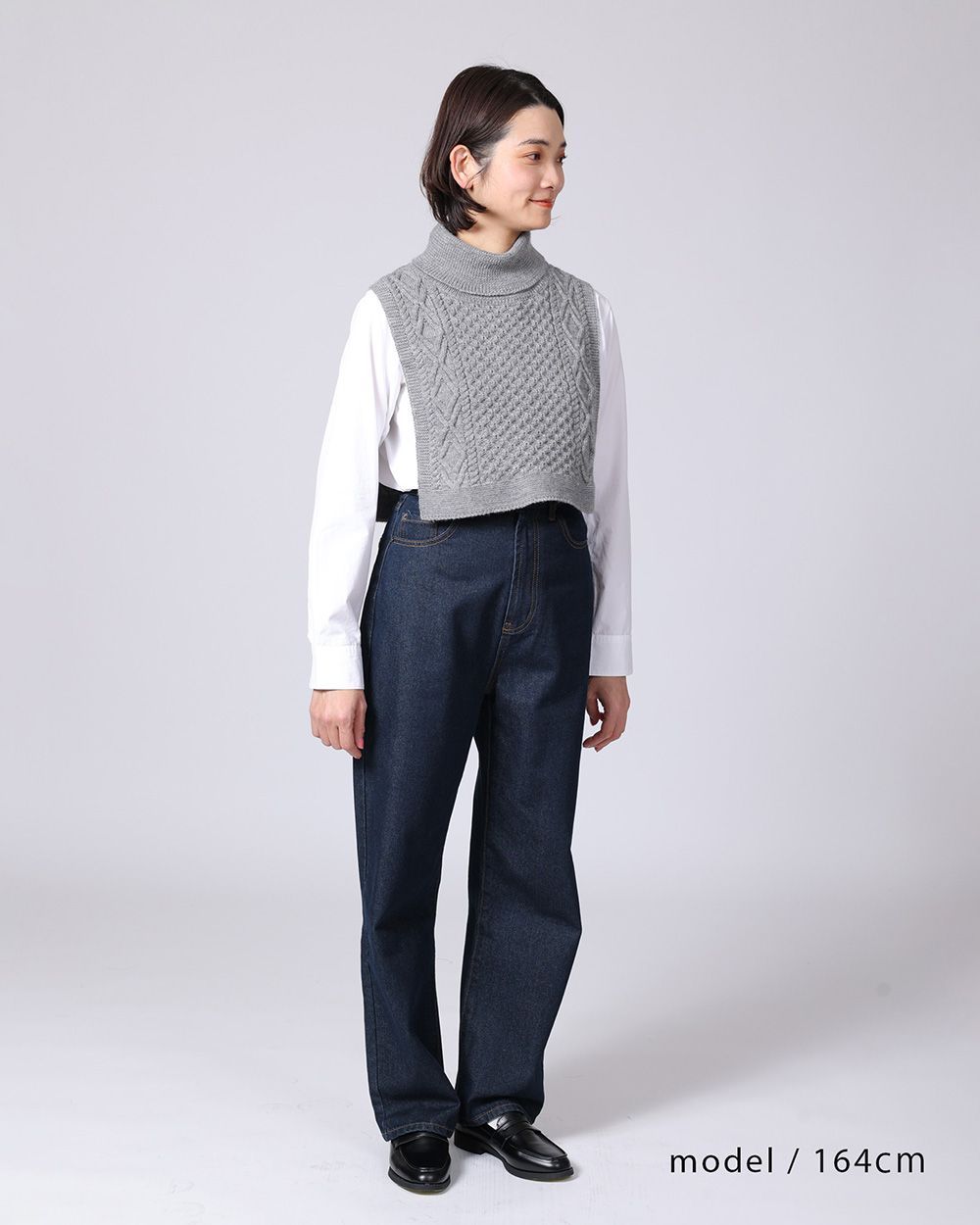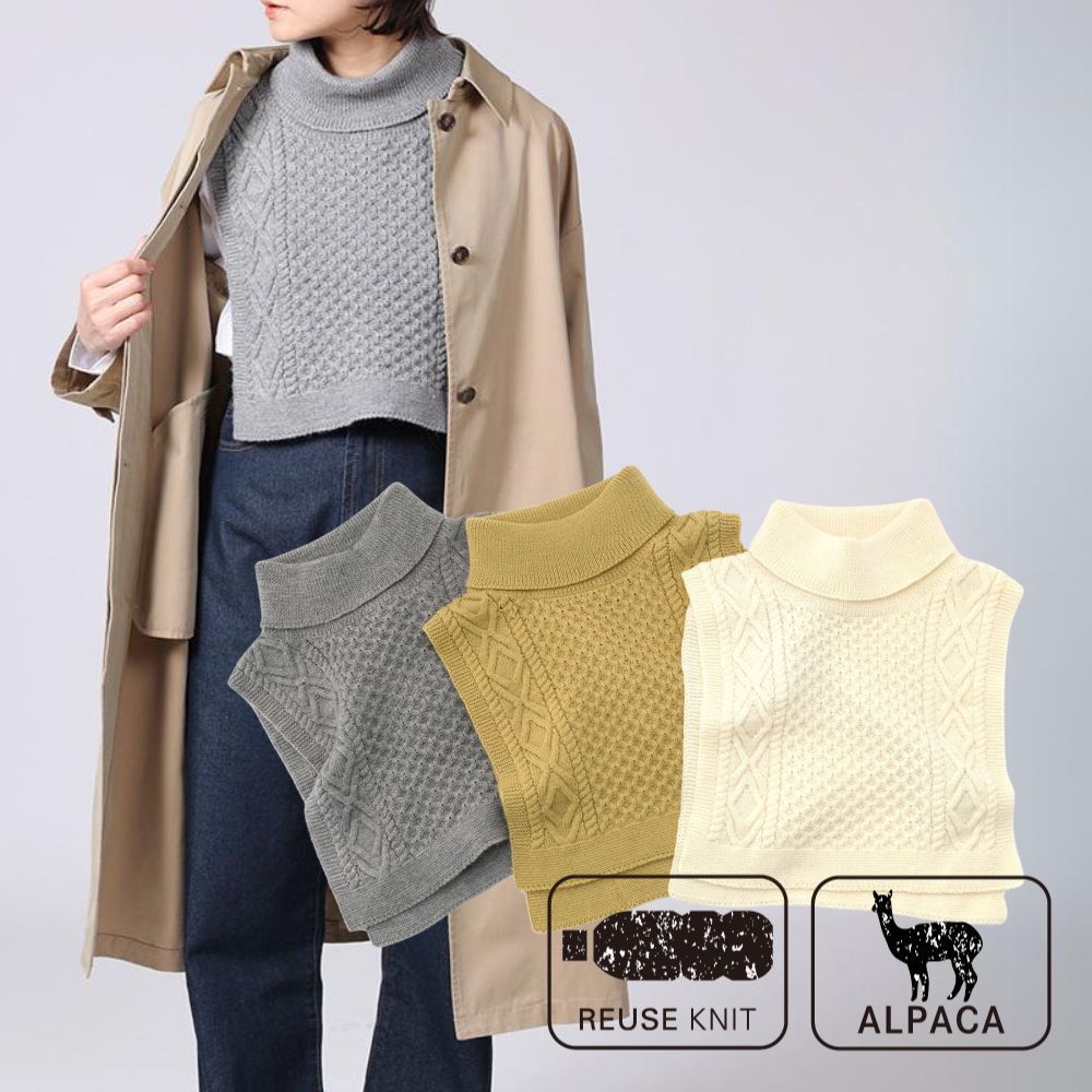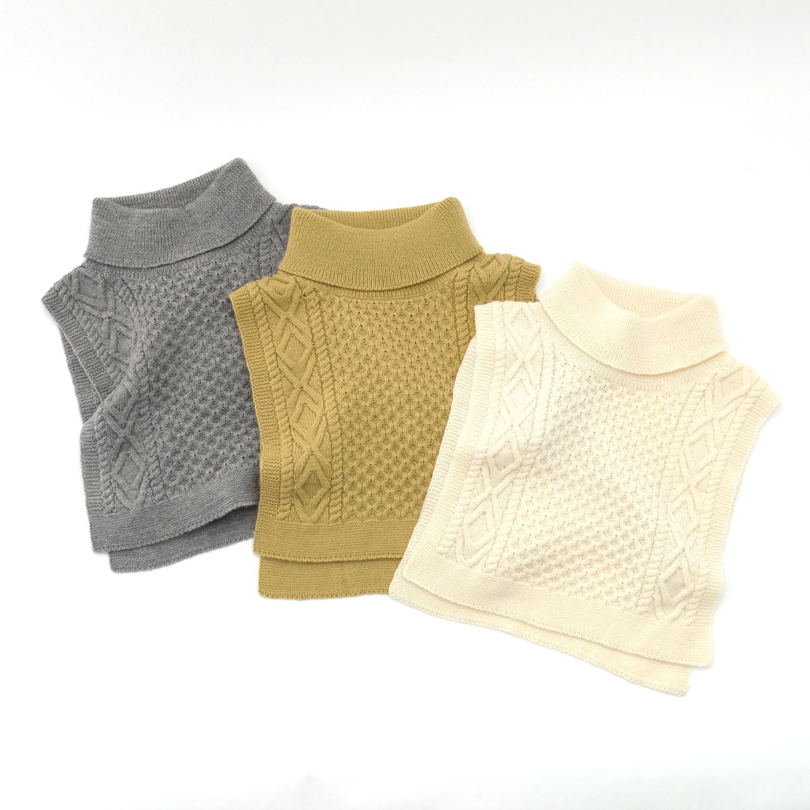 前年好評だったタートルネックケープ。24AWでは身頃にアラン編みをとりいれました。シャツやワンピースなどシンプルな装いに合わせれば、スタイリングにメリハリがでてポイントになります。レイヤードスタイルを気軽にお楽しめるアイテムです。初めての方はベストを着る感覚で、ぜひトライしてみてください。