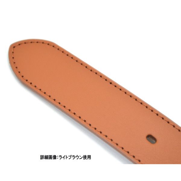 35ミリの使い勝手の良い幅に、ステッチがほどこされた定番デザインです。バックルは、ロゴが刻印された少し丸味のあるスクエア