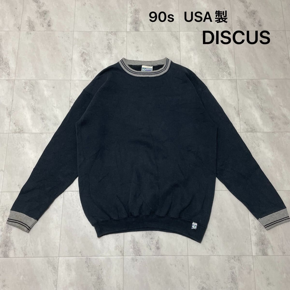 90s USA製 DISCUS ディスカス sweat スウェット トレーナー リブライン 無地 ヴィンテージ ブラック サイズM 玉FL3924