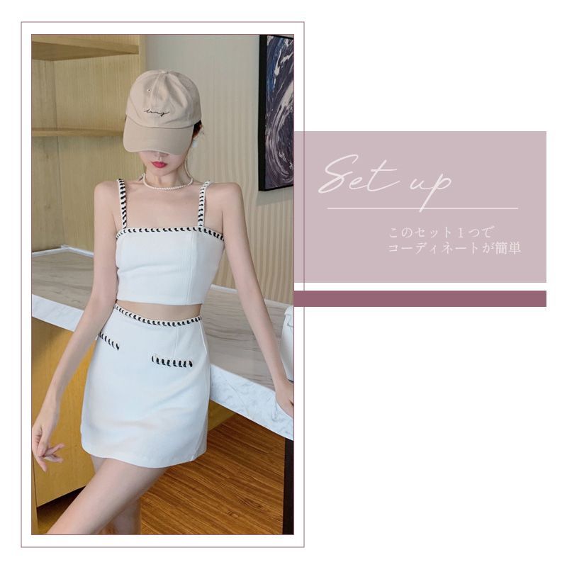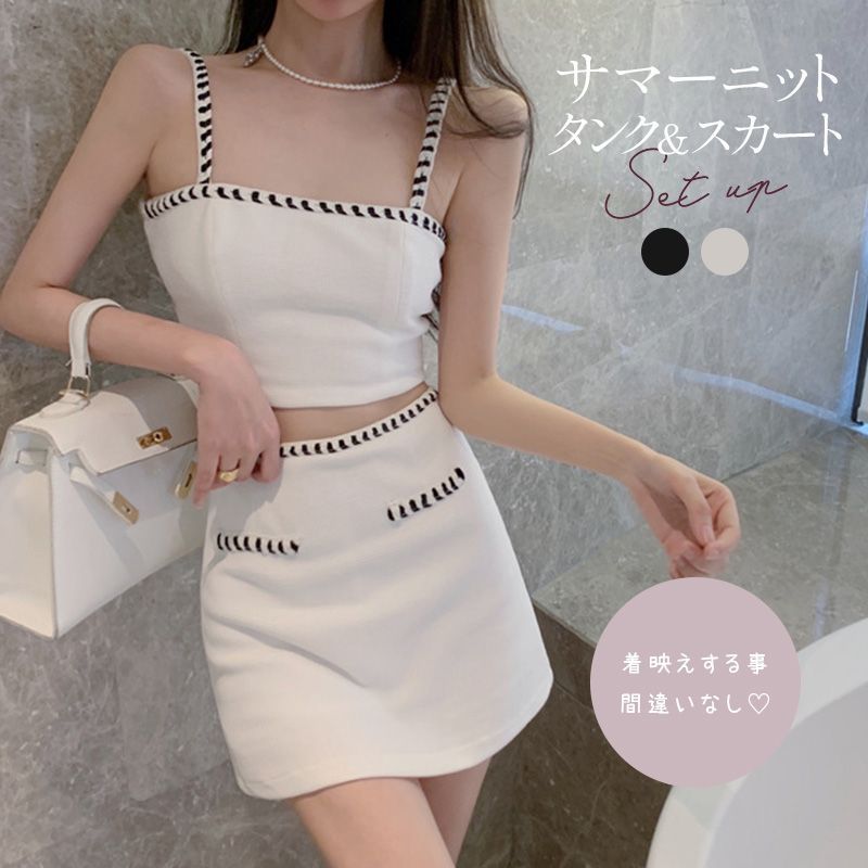 夏に最適なショート丈タンクとミニスカートのセットアップ。