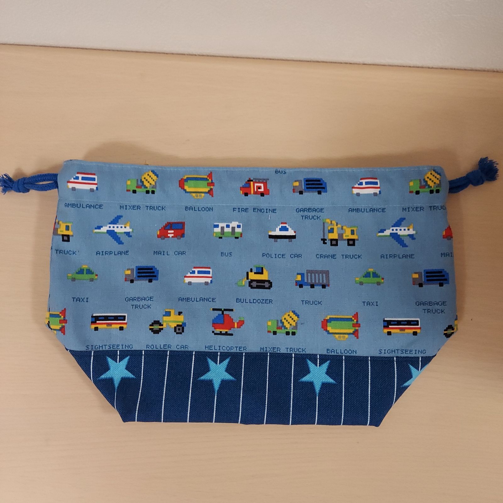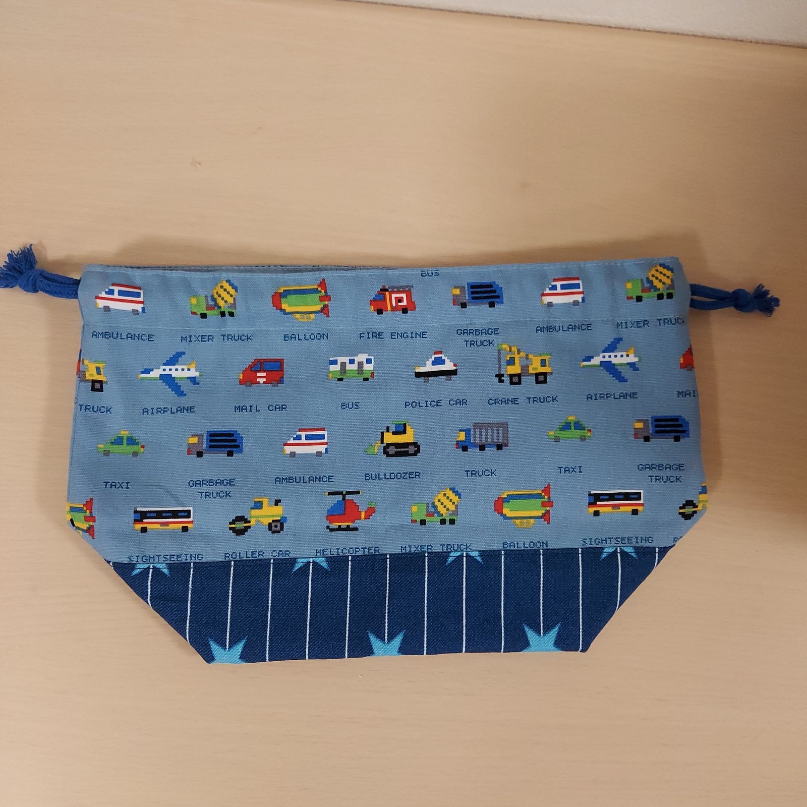 乗り物ブロック柄 お弁当袋 ハンドメイド