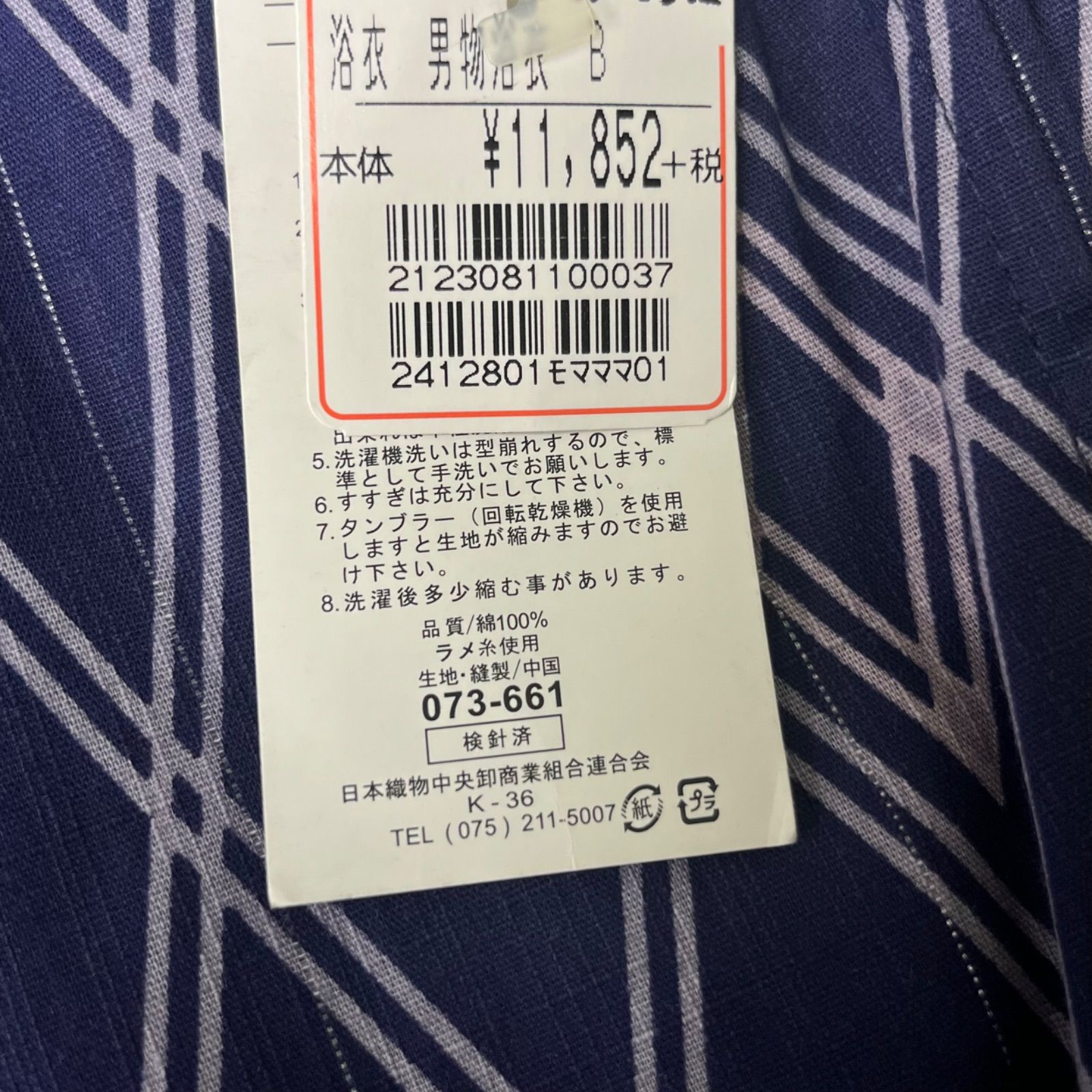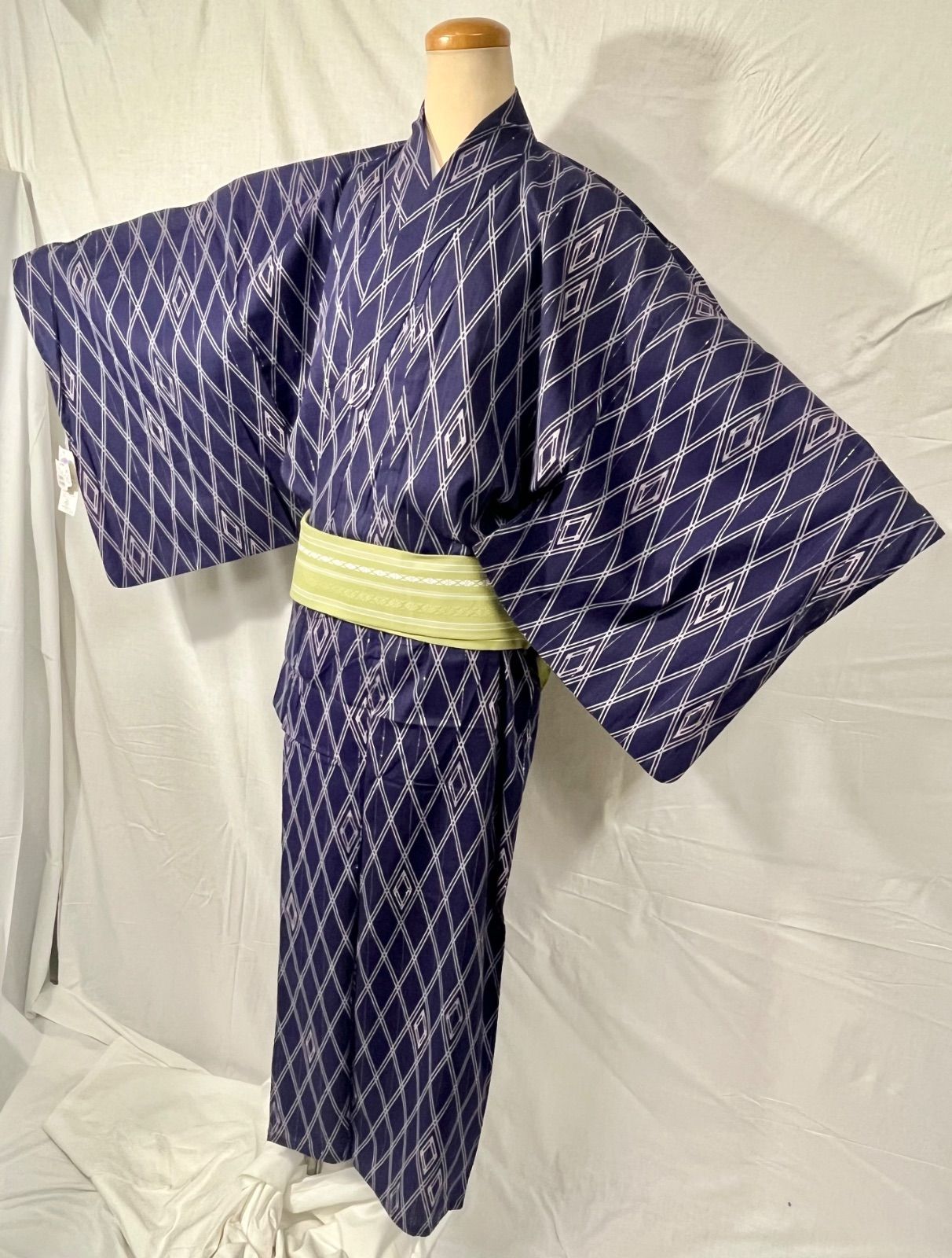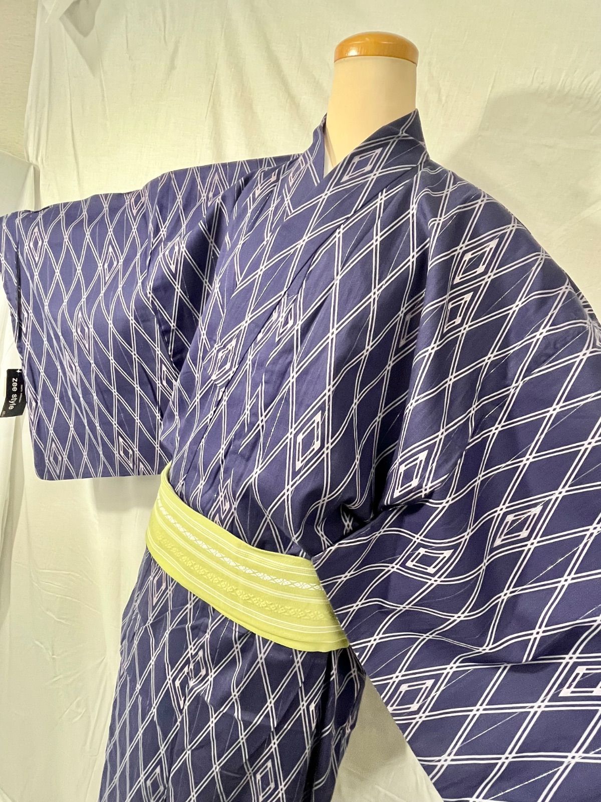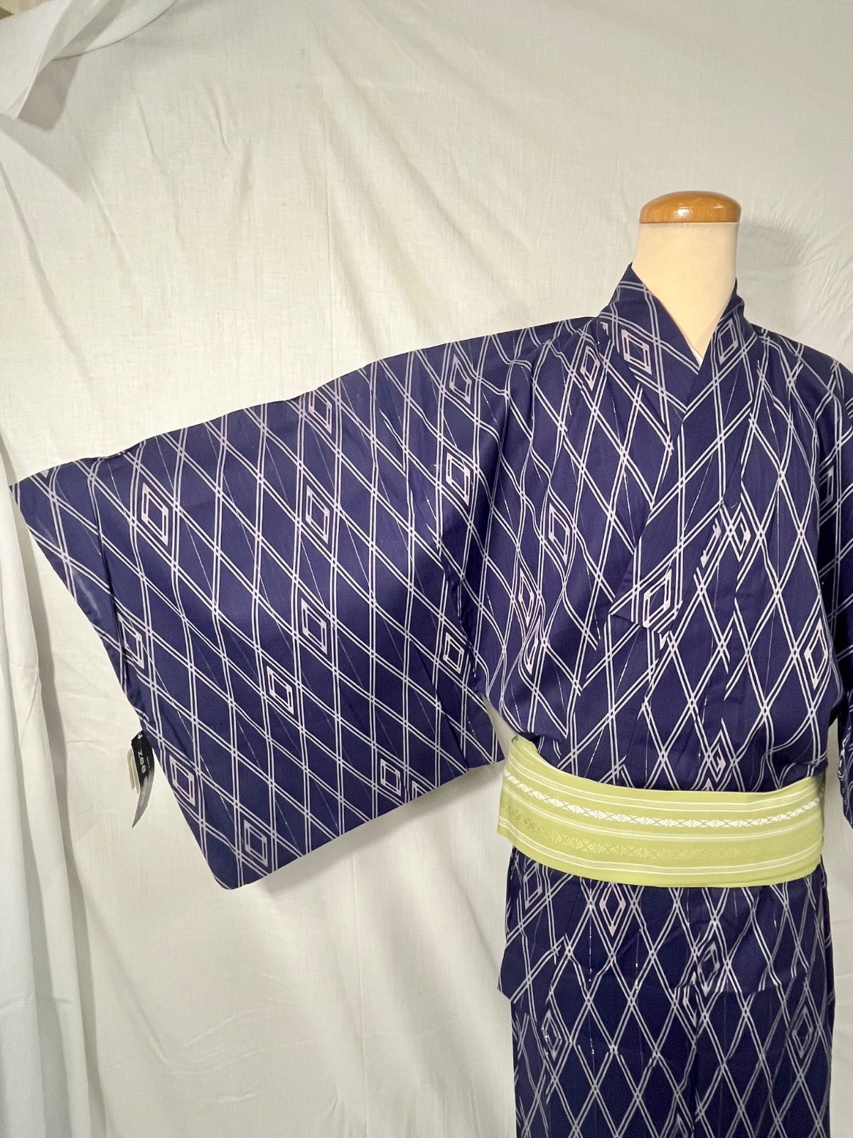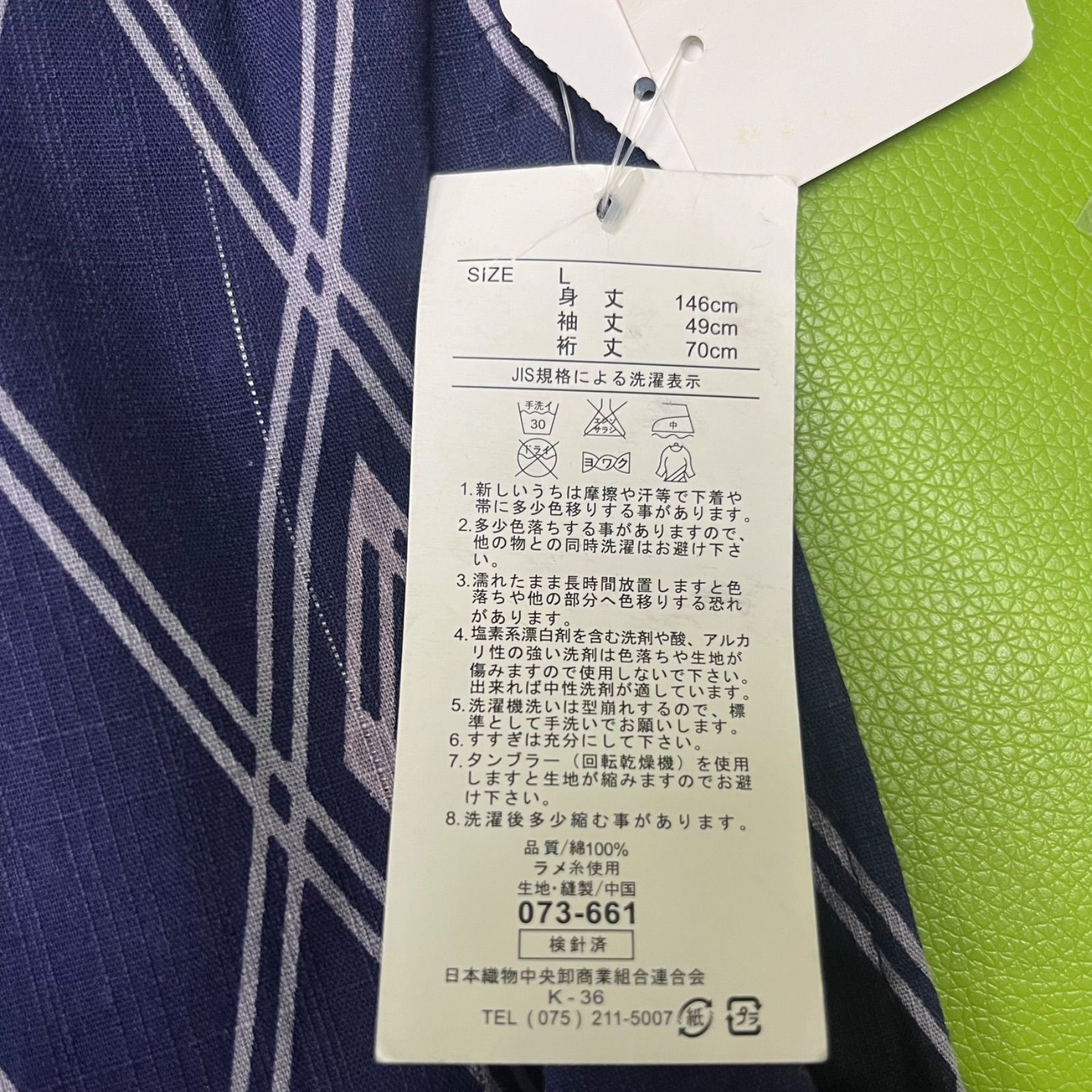 新品未使用 匿名配送 浴衣 メンズ 青 紺 菱模様 L サイズ