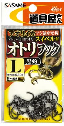 ●鈎とサルカンが一体化しているため、エサのアジが自然に泳ぎやすく、アオリイカに違和感を与えにくい