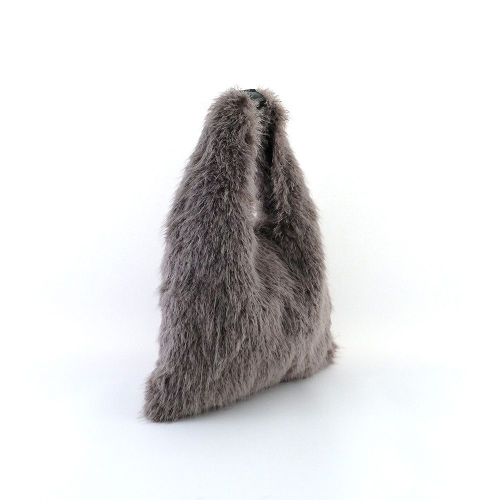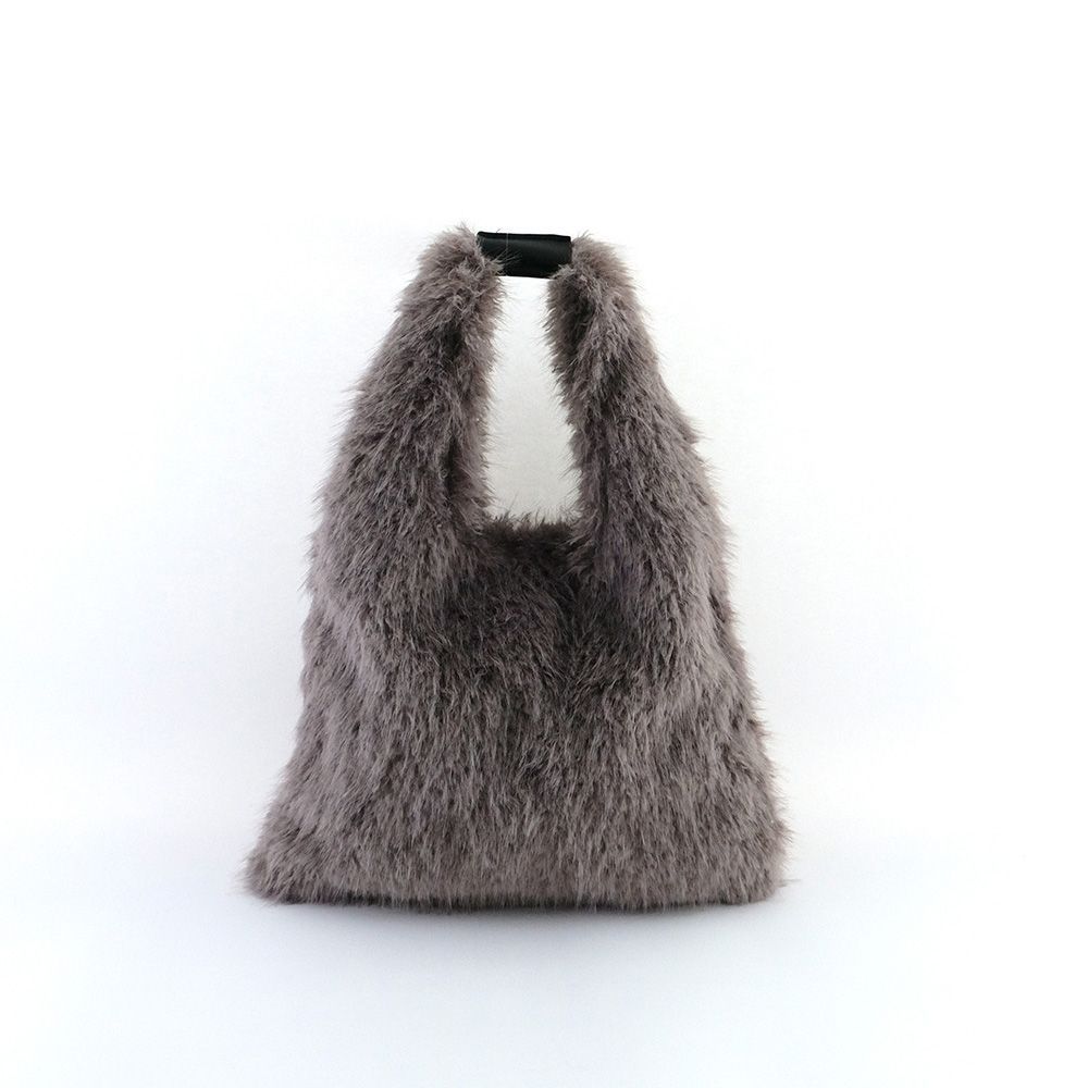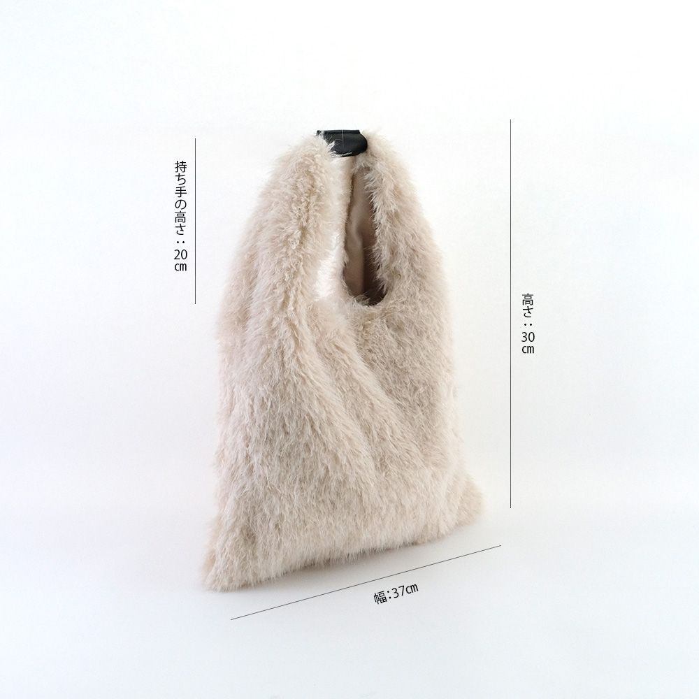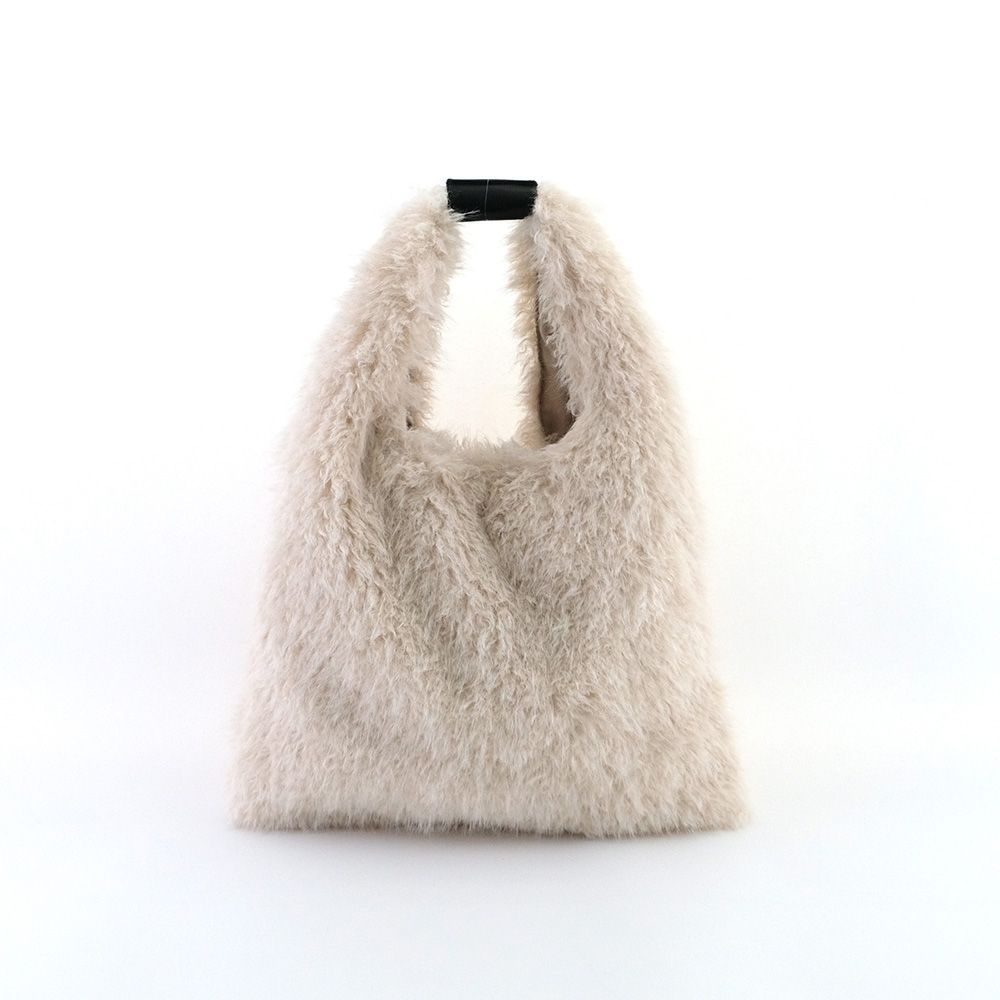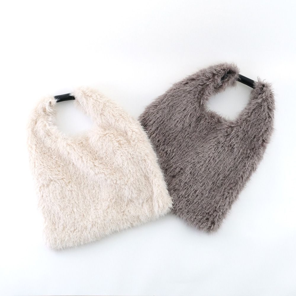 カールが混ざったシャギーファーが魅力のボリュームバッグ。ふんわりとした軽さと滑らかな手触りで、持つだけで洗練された存在感を演出します。ワンハンドルデザインがシンプルながらもスタイリッシュな印象を与え、握りやすいPUハンドルがアクセントに。冬のコーディネートを華やかに彩る、上質でトレンド感あふれるアイテムです。